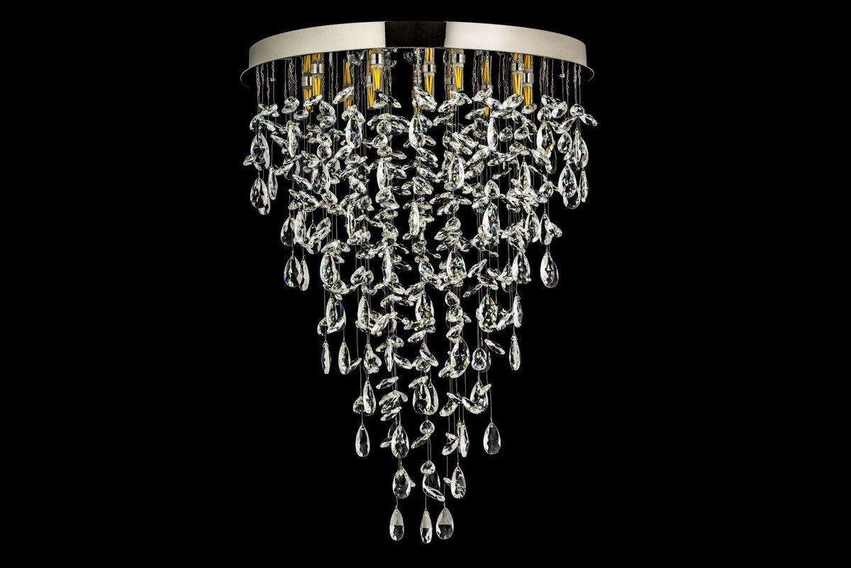 Потолочная люстра Arti Lampadari Flusso H 1.4.55.638 N от Итальянского бренда из коллекции Flusso Nickel будет удачно смотреться в гостиной в . Светильник выполнен из хрусталя с плафонами в форме прозрачного цвета.