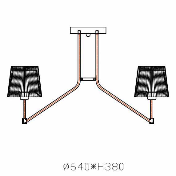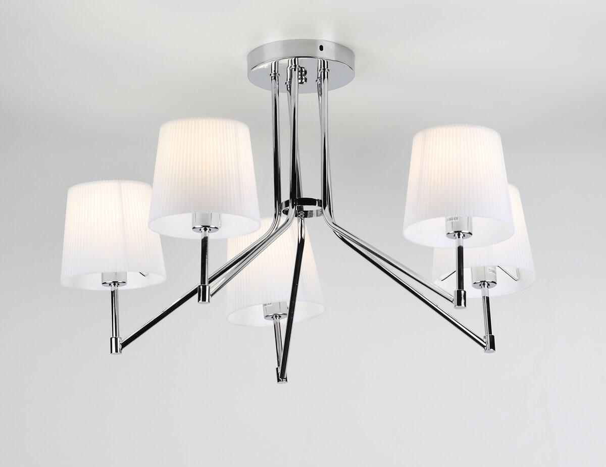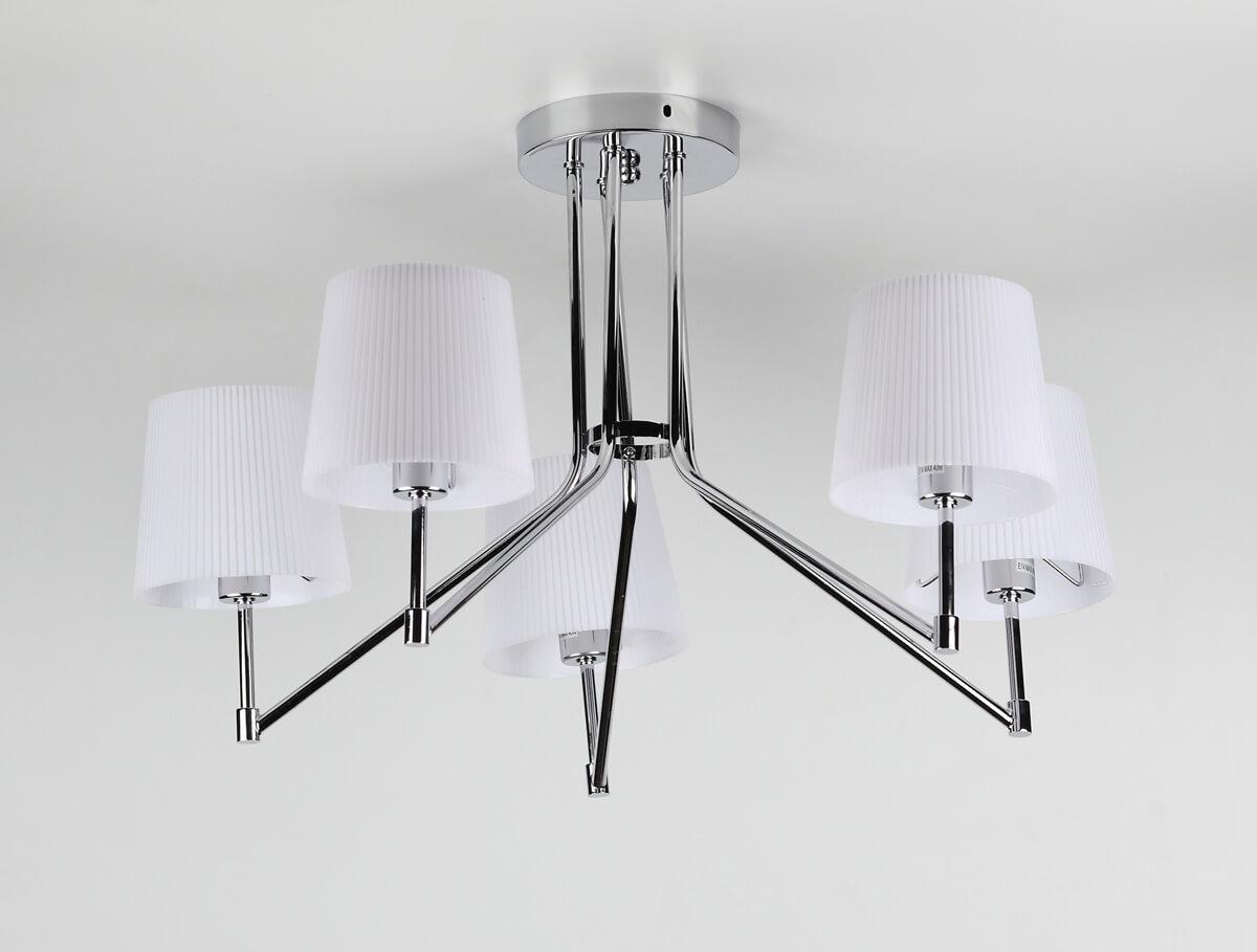 Производитель светильника рекомендует для устройства 5 ламп накаливания с цоколем E14 и мощностью 40 W, что позволит осветить помещение площадью 20 кв.м. Габариты изделия: высота – 380 мм, диаметр – 640 мм.