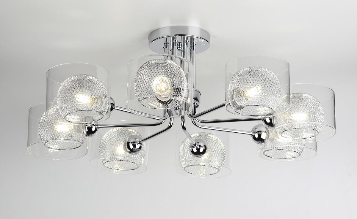 Производитель светильника рекомендует для устройства 8 ламп накаливания с цоколем E14 и мощностью 40 W, что позволит осветить помещение площадью 32 кв.м. Габариты изделия: высота – 260 мм, диаметр – 760 мм.