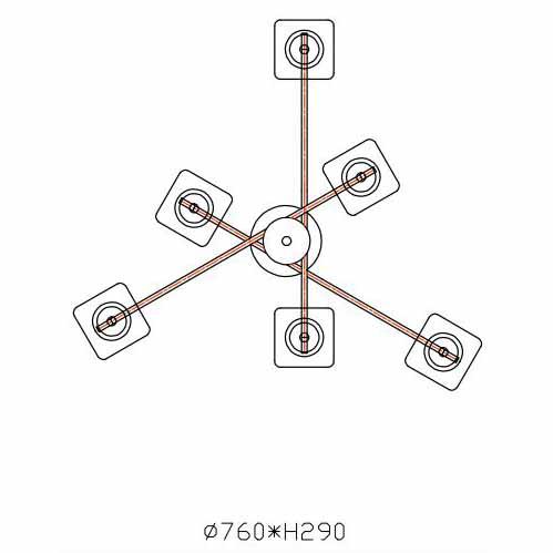Производитель светильника рекомендует для устройства 6 ламп накаливания с цоколем E14 и мощностью 40 W, что позволит осветить помещение площадью 24 кв.м. Габариты изделия: высота – 290 мм, диаметр – 760 мм.