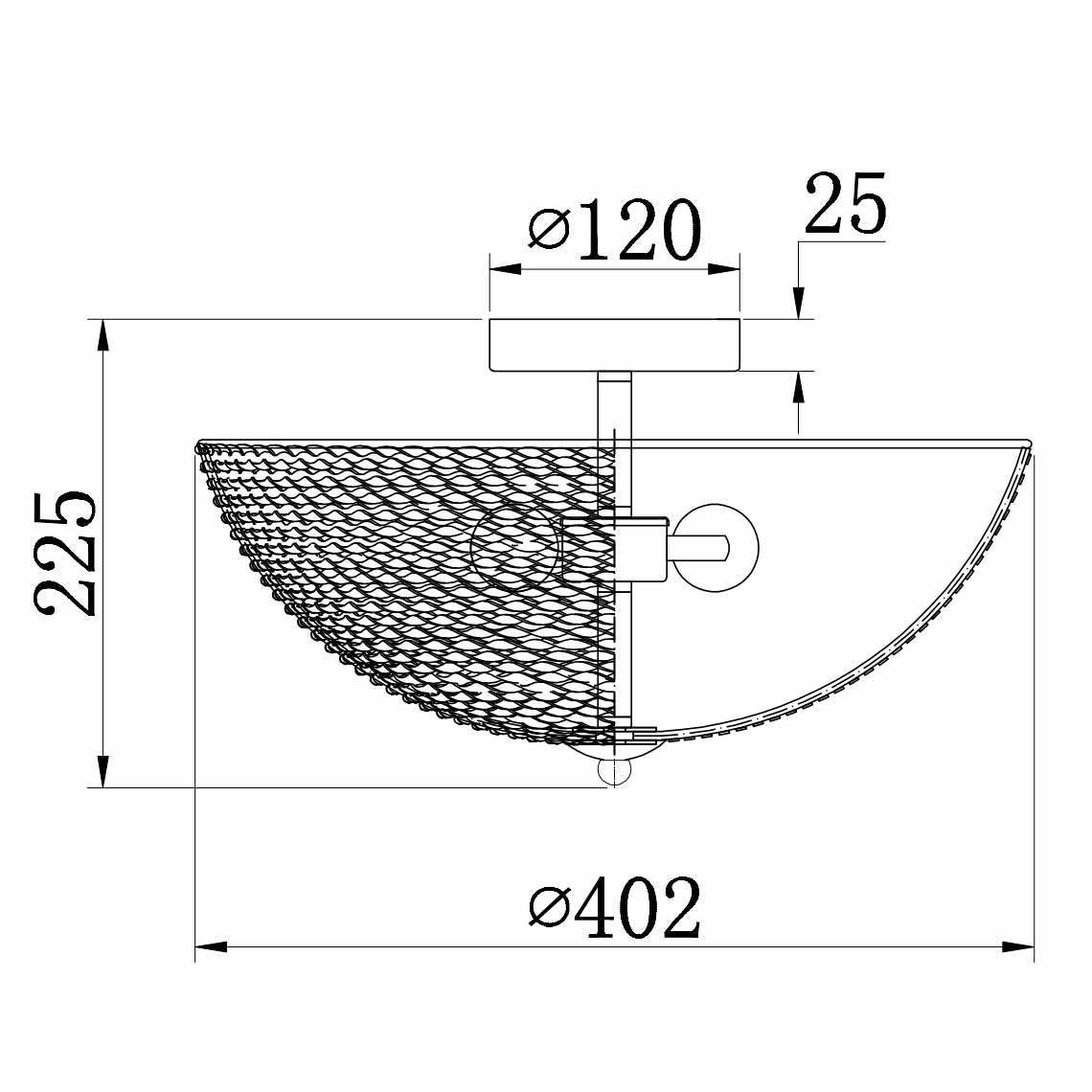 Производитель светильника рекомендует для устройства 3 лампы накаливания с цоколем E27 и мощностью 40 W, что позволит осветить помещение площадью 12 кв.м. Габариты изделия: высота – 225 мм, диаметр – 400 мм.
