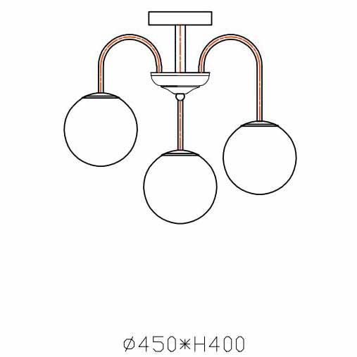 Производитель светильника рекомендует для устройства 3 лампы накаливания с цоколем E14 и мощностью 40 W, что позволит осветить помещение площадью 12 кв.м. Габариты изделия: высота – 400 мм, диаметр – 450 мм.