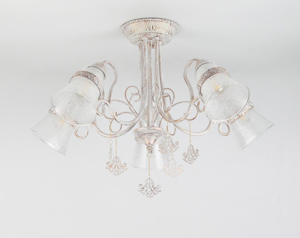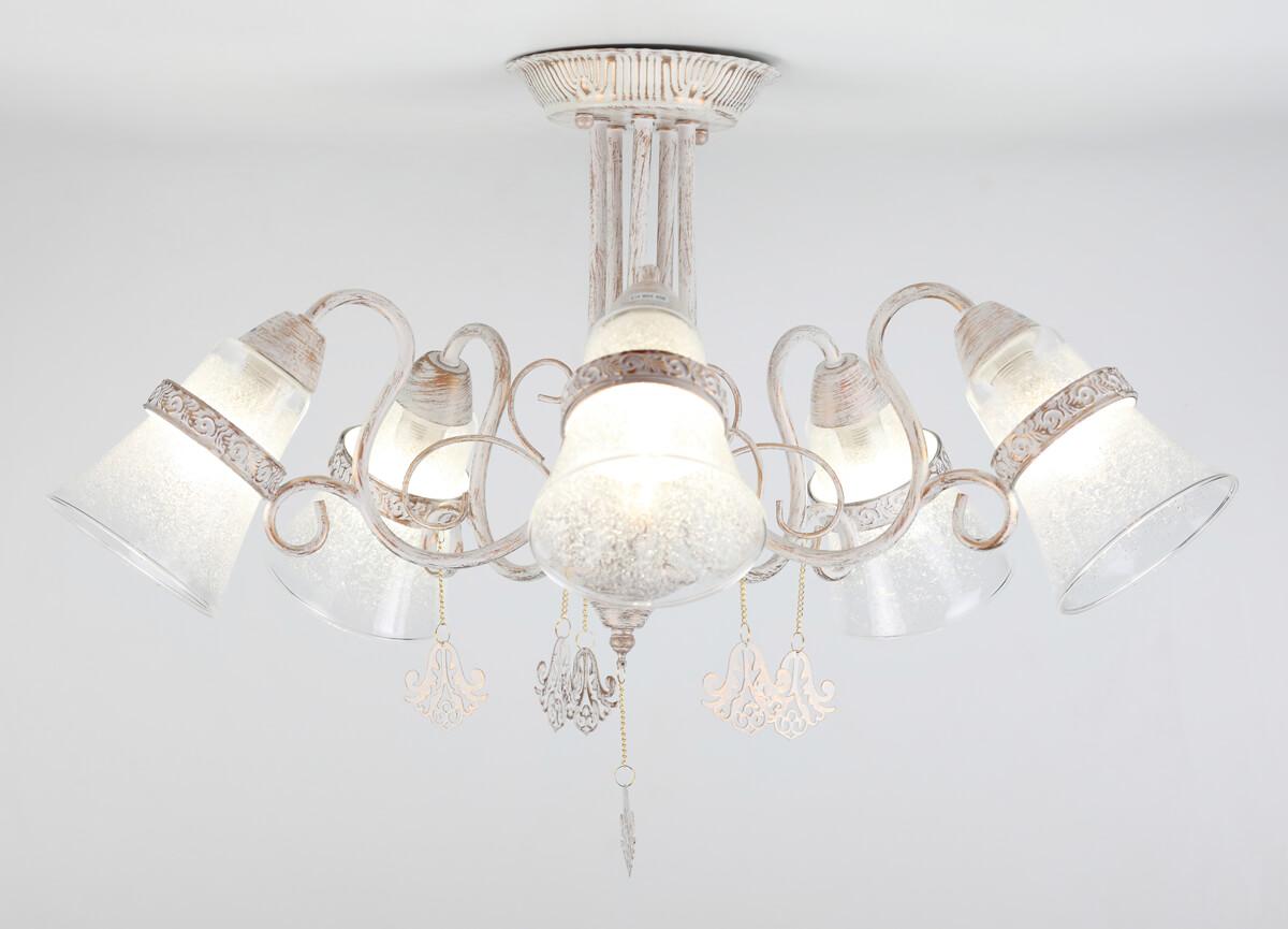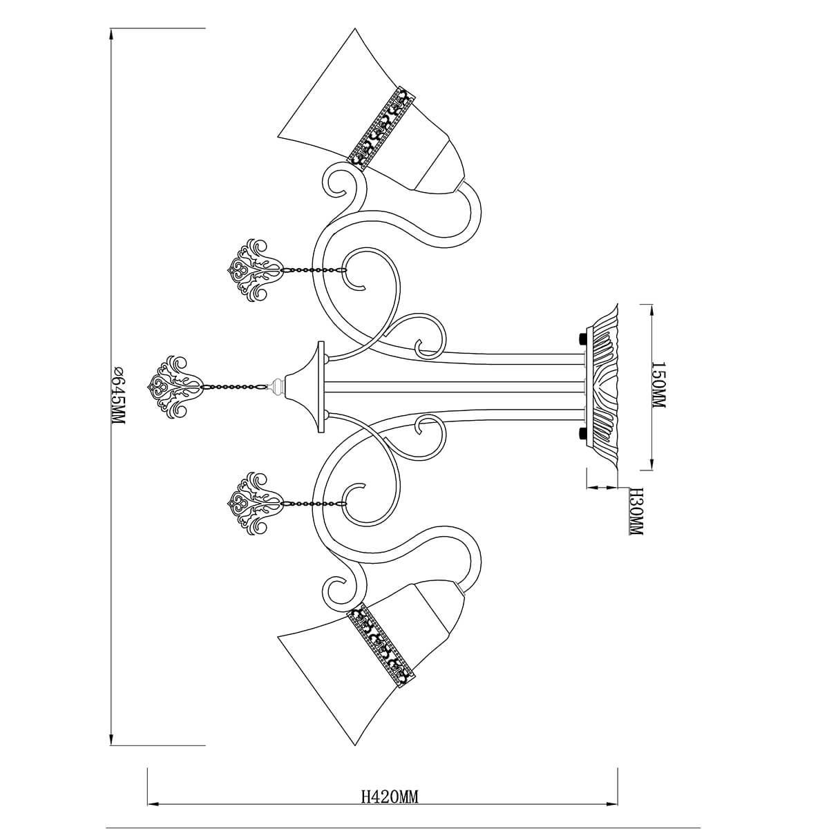 Производитель светильника рекомендует для устройства 5 ламп накаливания с цоколем E14 и мощностью 40 W, что позволит осветить помещение площадью 20 кв.м. Габариты изделия: высота – 430 мм, диаметр – 650 мм.