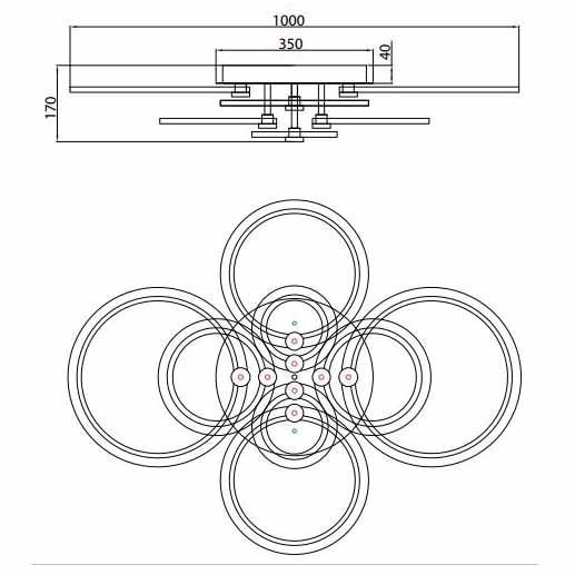 Производитель светильника рекомендует для устройства светодиодных ламп с цоколем LED и мощностью 96 W, что позволит осветить помещение площадью 48 кв.м. Габариты изделия: высота – 650 мм, диаметр – 1000 мм.
