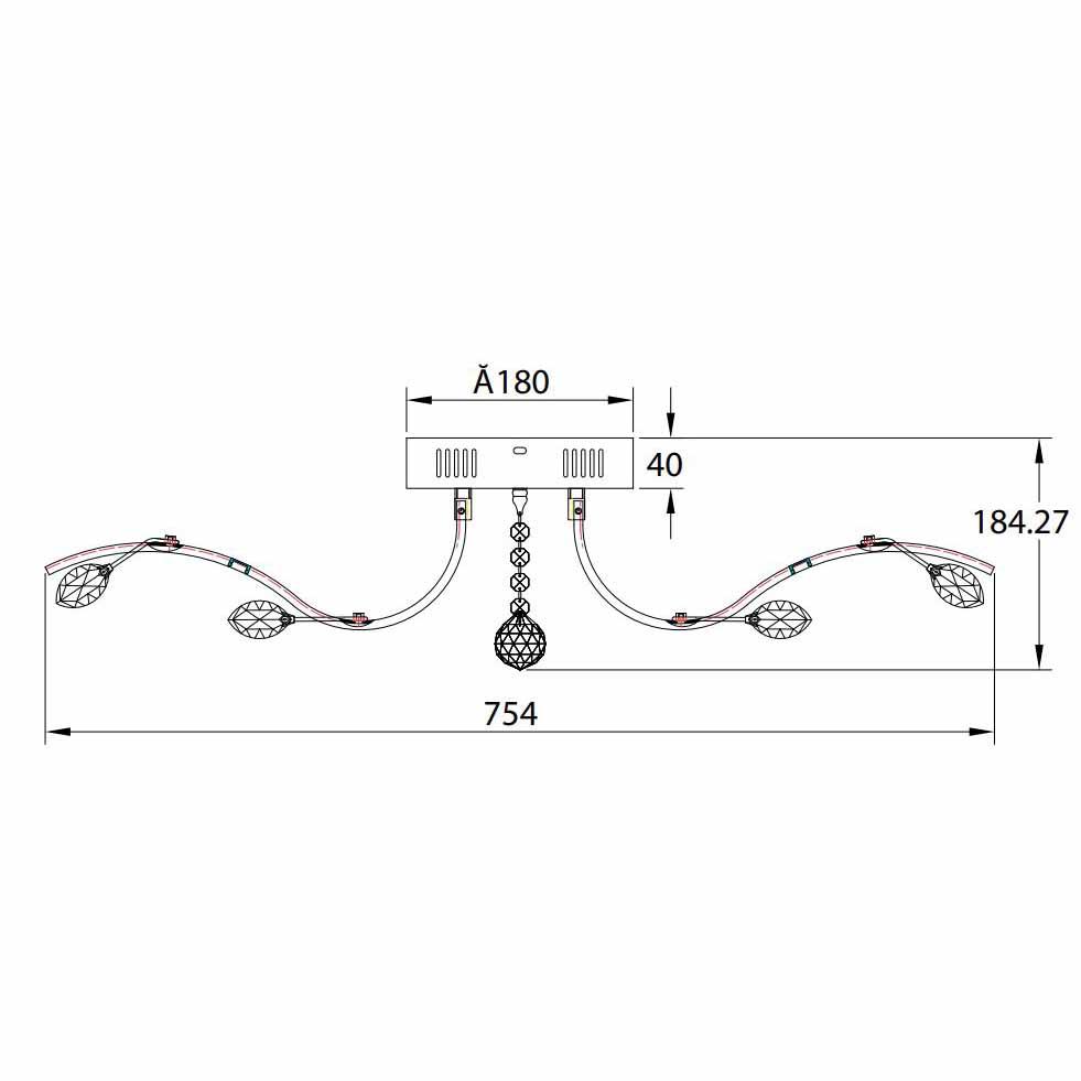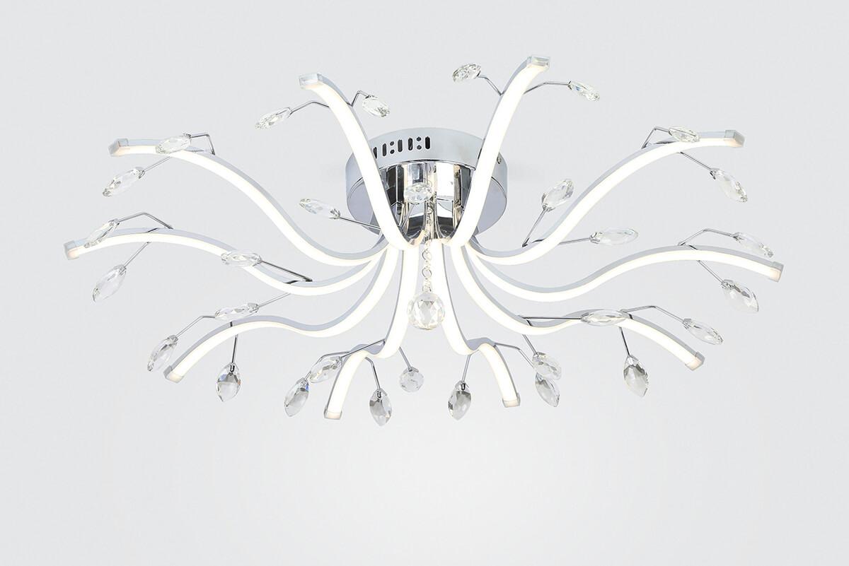 Производитель светильника рекомендует для устройства светодиодных ламп с цоколем LED и мощностью 80 W, что позволит осветить помещение площадью 40 кв.м. Габариты изделия: высота – 754 мм, диаметр – 754 мм.
