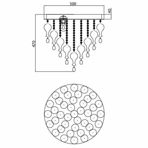 Производитель светильника рекомендует для устройства светодиодных ламп с цоколем LED и мощностью 40 W, что позволит осветить помещение площадью 24 кв.м. Габариты изделия: высота – 500 мм, диаметр – 500 мм.