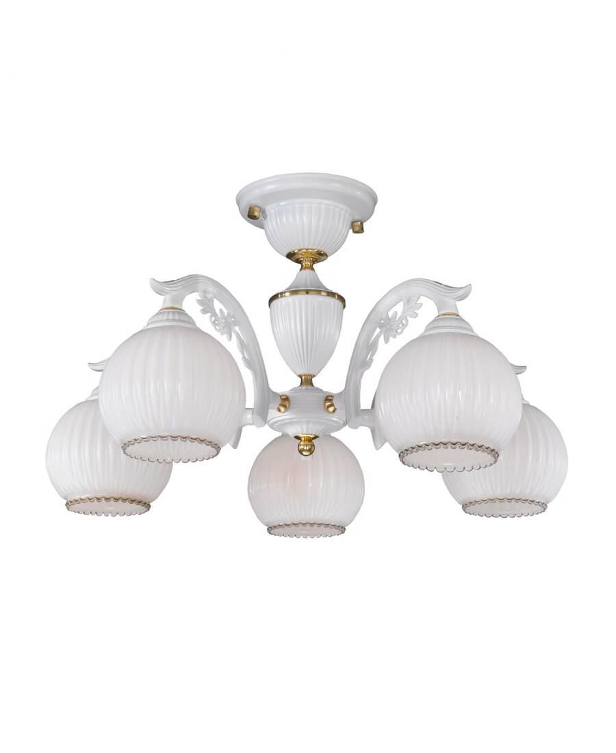 Потолочная люстра Reccagni Angelo PL 9600/5 от Итальянского бренда из коллекции 9600 будет удачно смотреться в гостиной в классиком стиле. Светильник выполнен из стекла с плафонами в форме белого цвета.