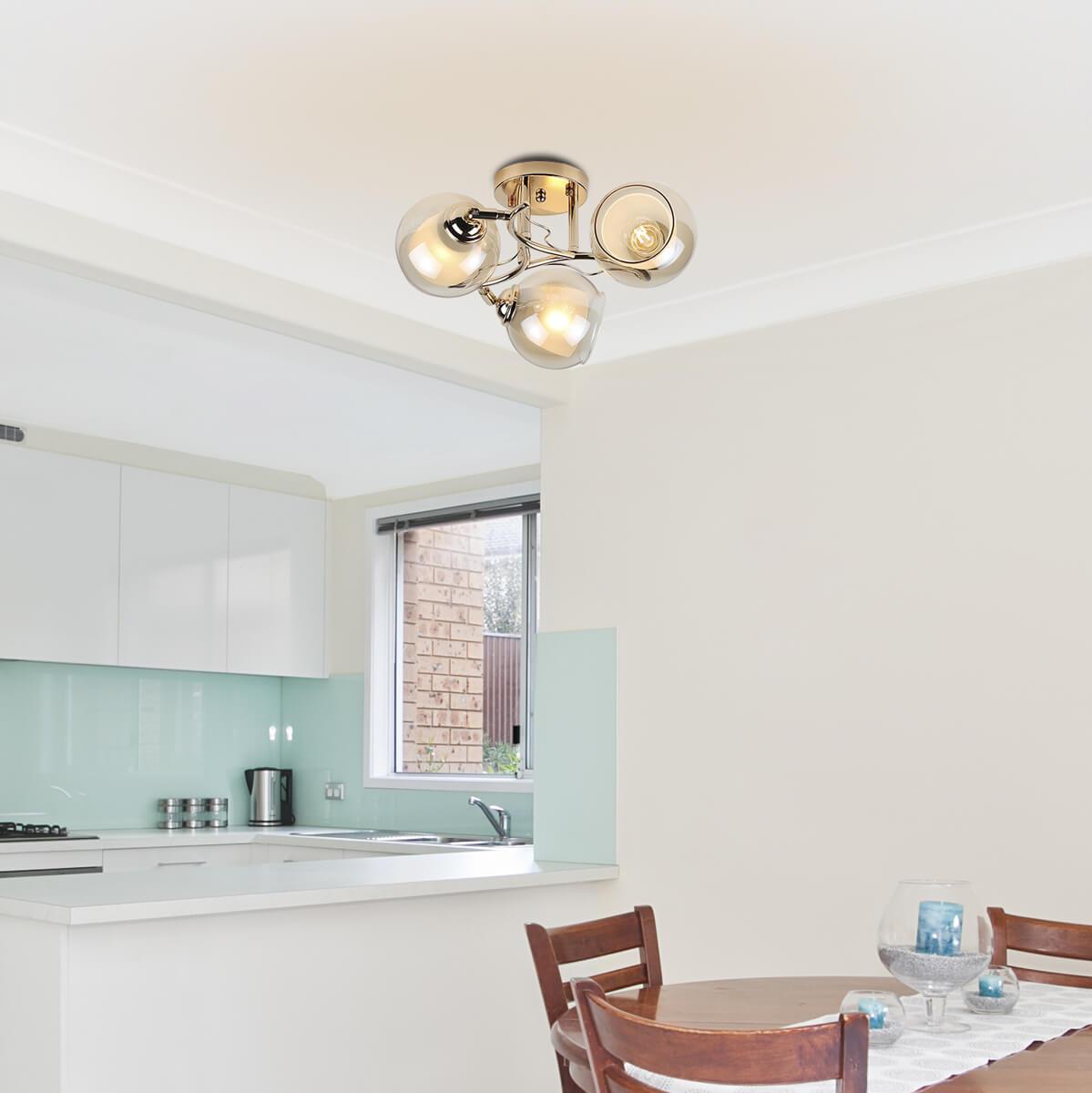 Потолочная люстра Rivoli Dino 9002-303 Б0044446 от Итальянского бренда Rivoli из коллекции Dino будет удачно смотреться в спальни в современном стиле. Светильник выполнен из стекла с плафонами в форме круга залотого цвета.