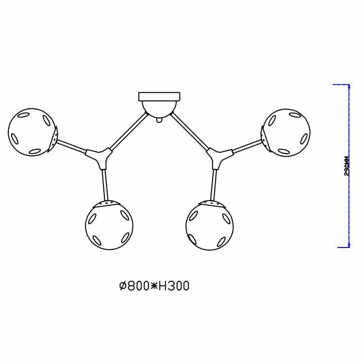 Производитель светильника рекомендует для устройства 8 ламп накаливания с цоколем E14 и мощностью 40 W, что позволит осветить помещение площадью 22 кв.м. Габариты изделия: высота – 300 мм, диаметр – 800 мм.