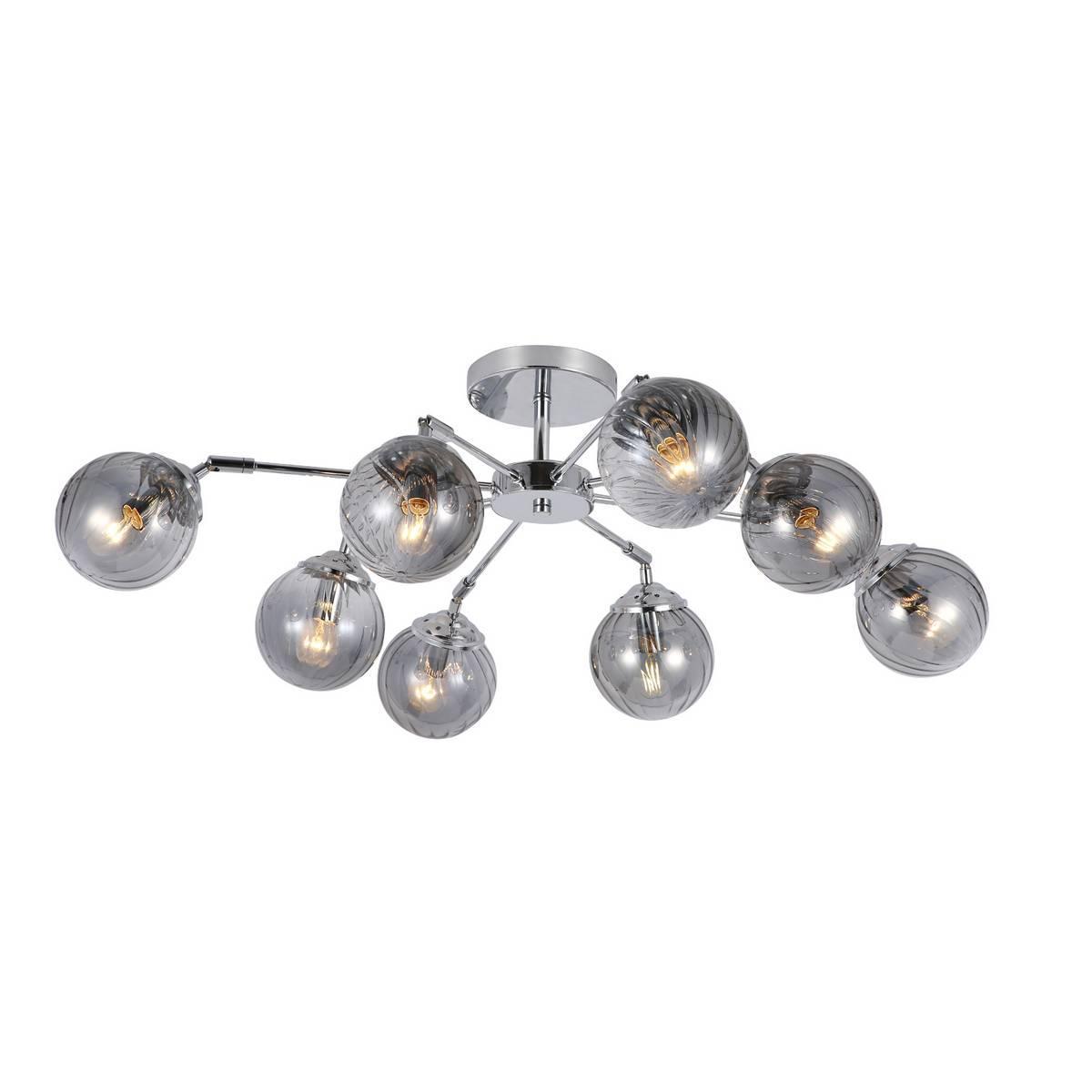 Потолочная люстра Evoluce Fasia SLE102202-08 от Китайского бренда Evoluce из коллекции Fasia будет удачно смотреться в гостиной в стиле модерн. Светильник выполнен из стекла с плафонами в форме шара дымчатого цвета.