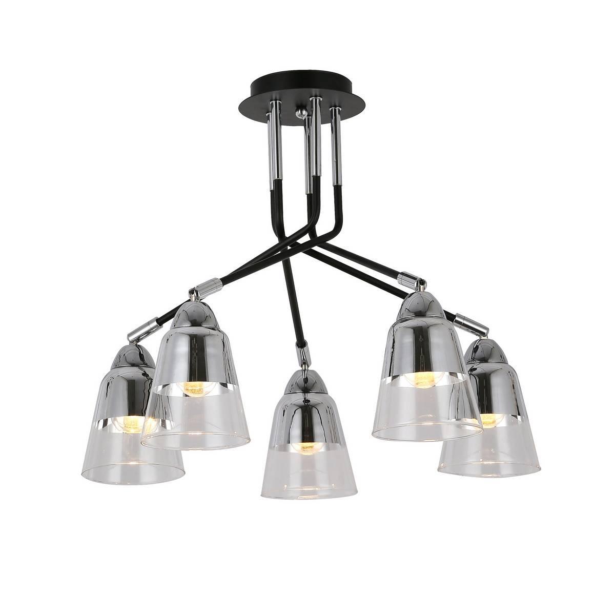 Потолочная люстра Evoluce Lirino SLE102902-05 от Китайского бренда Evoluce из коллекции Lirino будет удачно смотреться в гостиной в стиле модерн. Светильник выполнен из стекла с плафонами в форме конуса прозрачного цвета.
