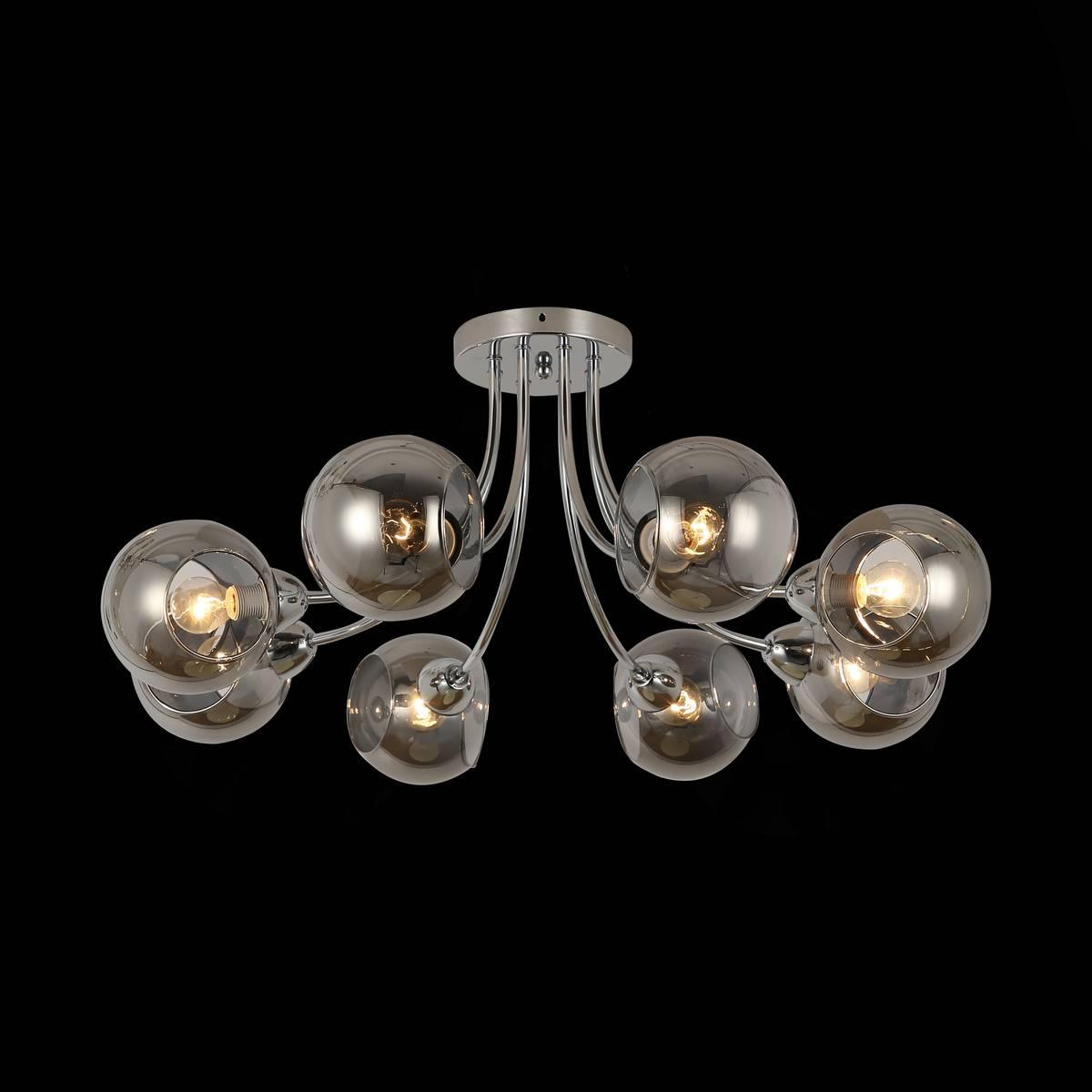 Потолочная люстра Evoluce Relotte SLE102102-08 от бренда Evoluce из коллекции Relotte будет удачно смотреться в гостиной в стиле модерн. Светильник выполнен из стекла с плафонами в форме шара дымчатого цвета.