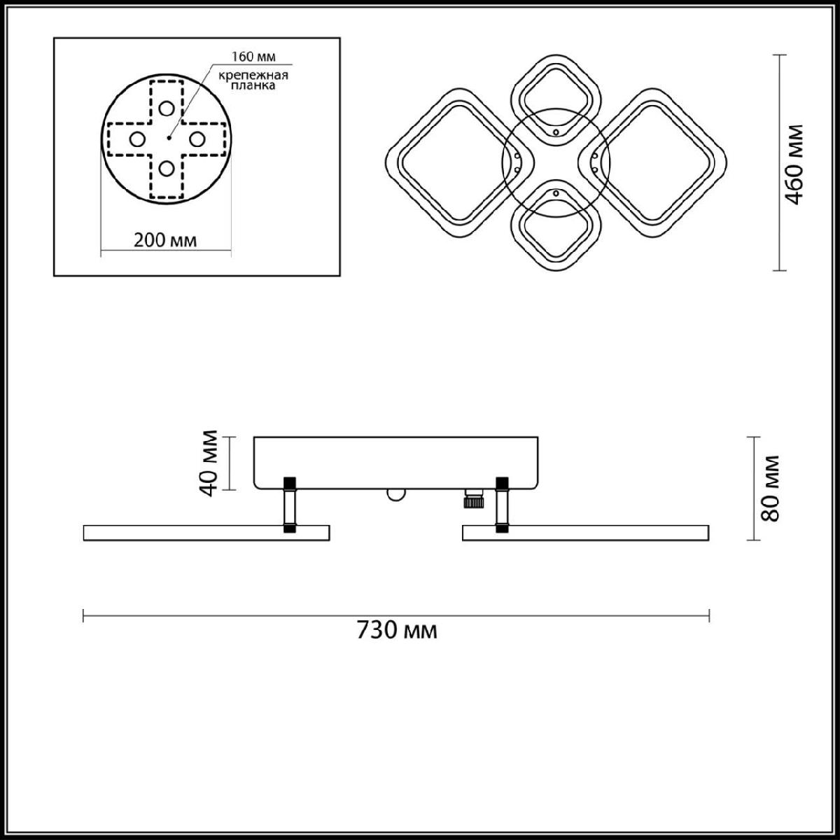 Производитель светильника рекомендует для устройства светодиодных ламп с цоколем LED и мощностью 18 W, что позволит осветить помещение площадью 18 кв.м. Габариты изделия: высота – 80 мм, диаметр – мм.