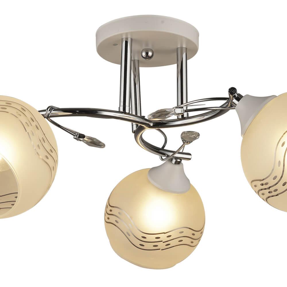 Производитель светильника рекомендует для устройства 3 лампы накаливания с цоколем E27 и мощностью 60 W, что позволит осветить помещение площадью 9 кв.м. Габариты изделия: высота – 225 мм, диаметр – 530 мм.