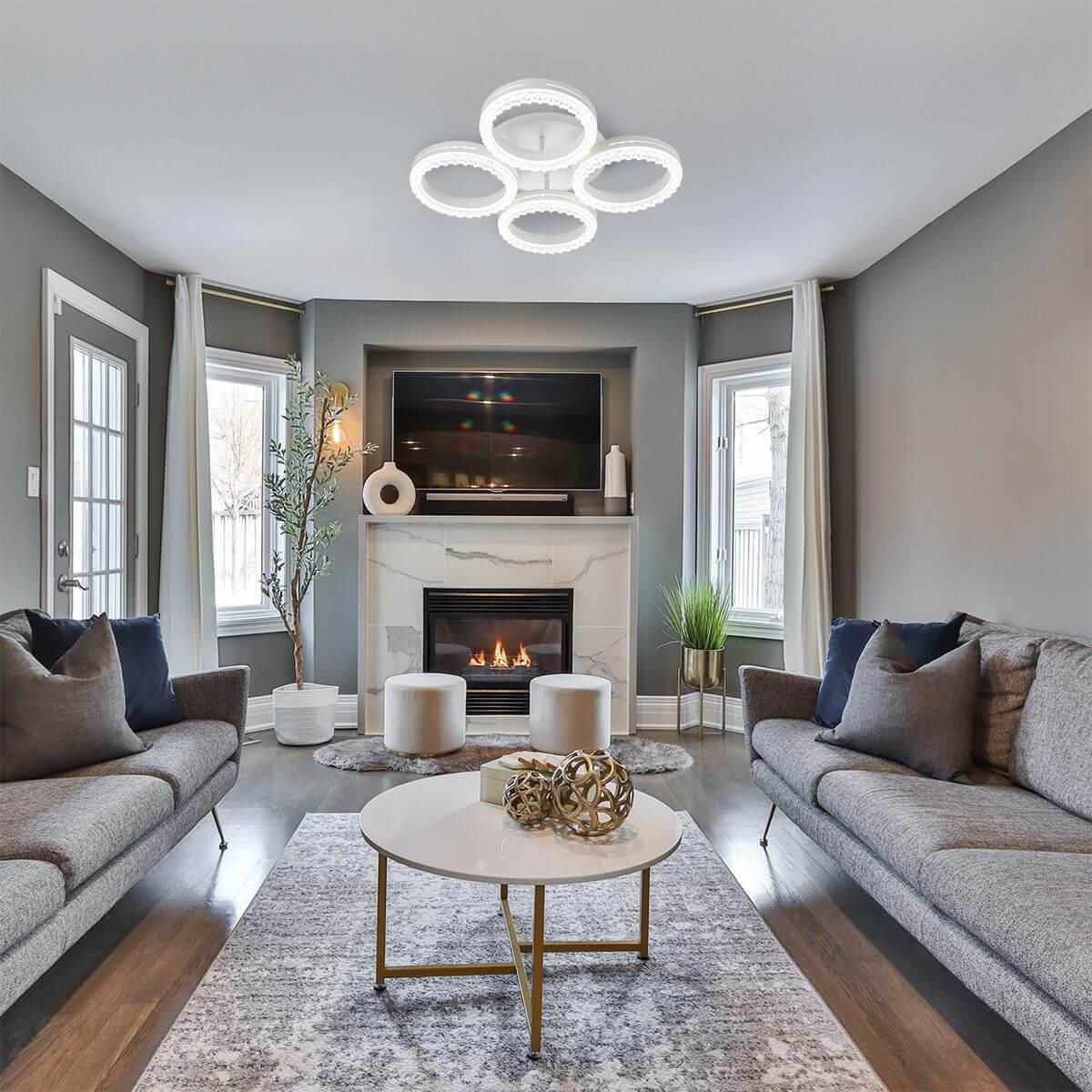 Производитель светильника рекомендует для устройства 4 лампы накаливания с цоколем LED и мощностью 70 W, что позволит осветить помещение площадью 19 кв.м. Габариты изделия: высота – 130 мм, диаметр – 500 мм.