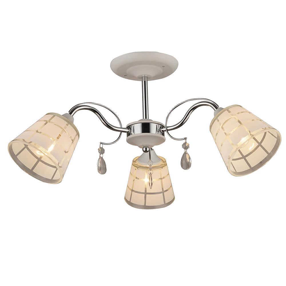 Производитель светильника рекомендует для устройства 3 лампы накаливания с цоколем E27 и мощностью 60 W, что позволит осветить помещение площадью 9 кв.м. Габариты изделия: высота – 280 мм, диаметр – 595 мм.