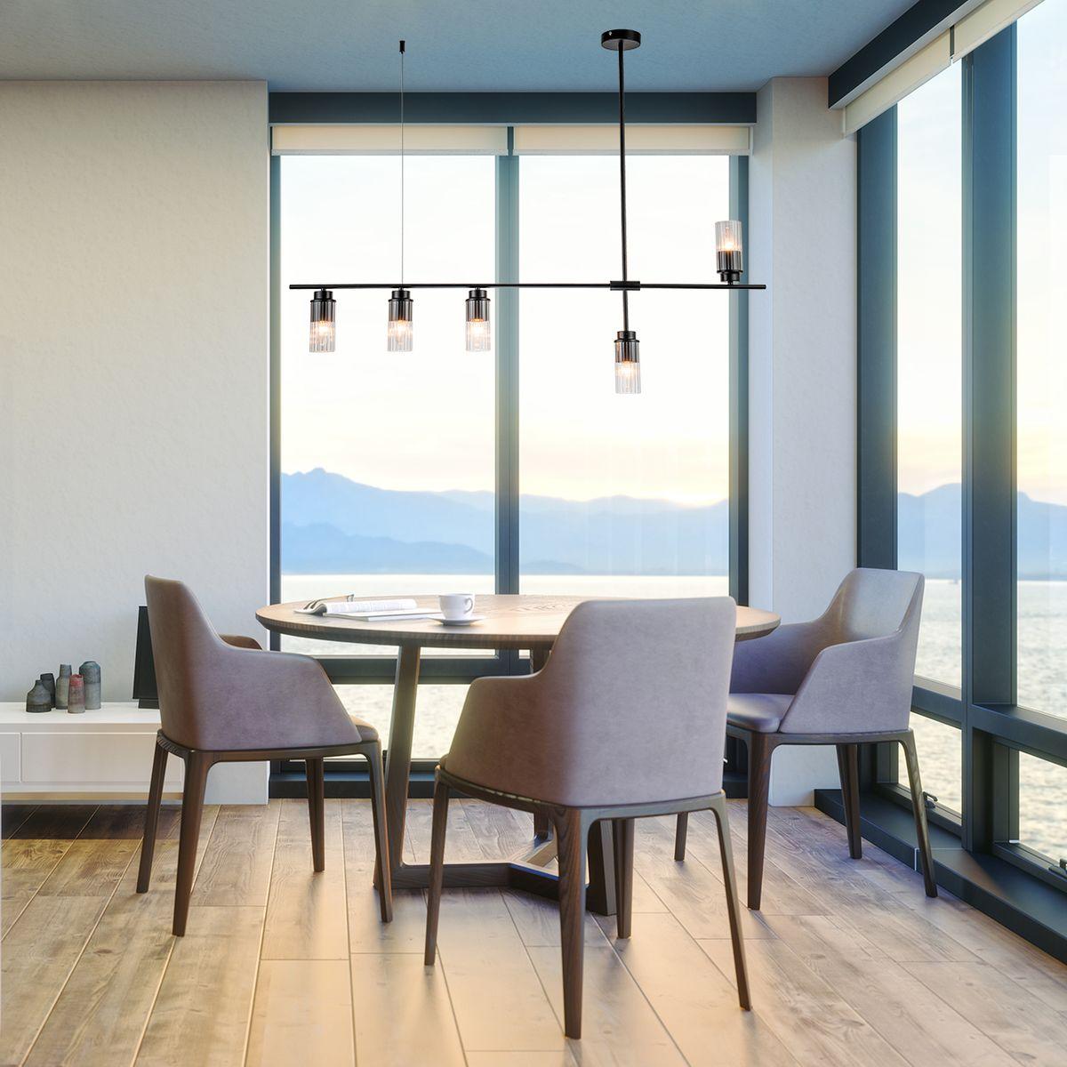 Подвесная люстра Escada Reverse 2100/5P Black от Китайского бренда из коллекции Reverse будет удачно смотреться в кухне в современном стиле. Светильник выполнен из стекла с плафонами в форме прозрачного цвета.