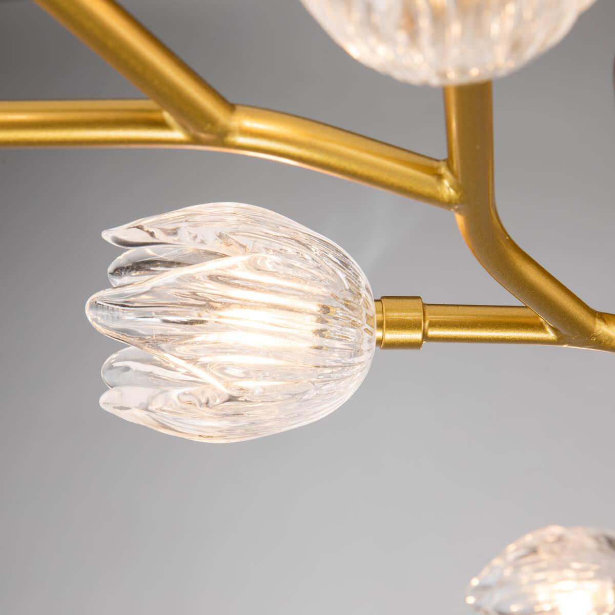 Потолочная люстра F-Promo Pelerina 2622-12U от Немецкого бренда F-Promo из коллекции Pelerina будет удачно смотреться в спальни в стиле флористика. Светильник выполнен из стекла с плафонами в форме Флористика прозрачного цвета.