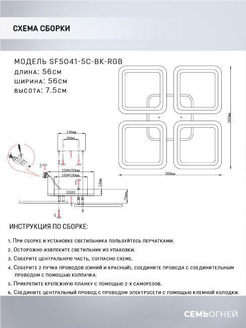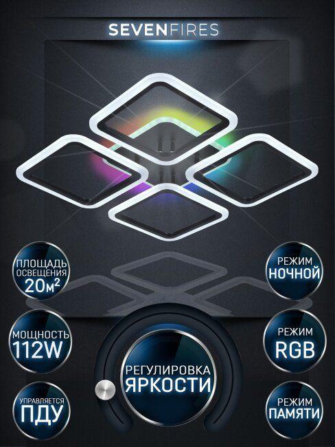 Потолочная светодиодная люстра Seven Fires Barna SF5041/5C-BK-RGB от Китайского бренда из коллекции Barna будет удачно смотреться в гостиной в хай-тек стиле. Светильник выполнен из акрила с плафонами в форме .
