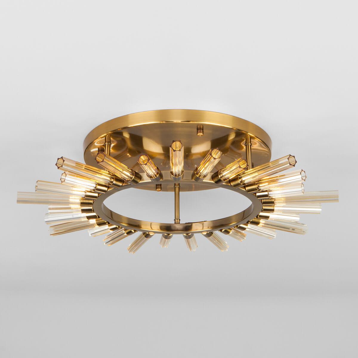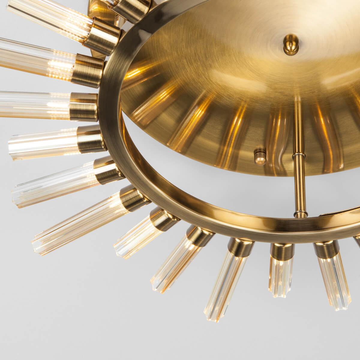 Производитель светильника рекомендует для устройства 27 галогеновых ламп с цоколем G4 и мощностью 3 W, что позволит осветить помещение площадью 12 кв.м. Габариты изделия: высота – 150 мм, диаметр – 650 мм.