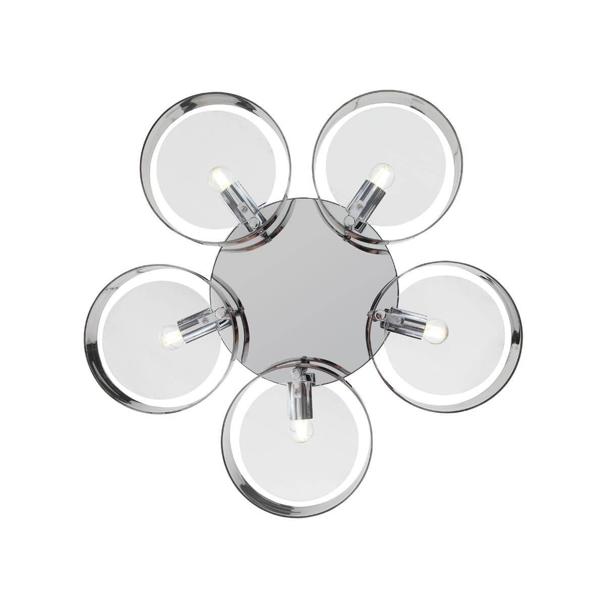 Производитель светильника рекомендует для устройства 5 ламп накаливания с цоколем E27 и мощностью 40 W, что позволит осветить помещение площадью 11 кв.м. Габариты изделия: высота – 200 мм, диаметр – 720 мм.