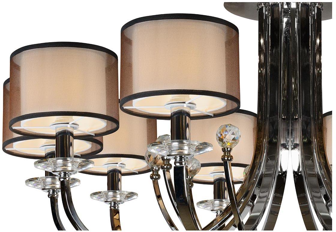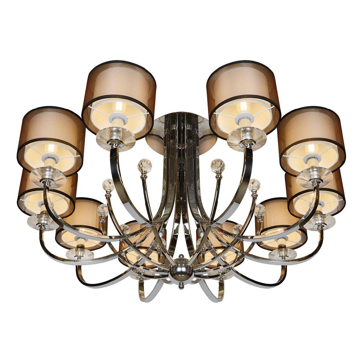 Потолочная люстра iLamp America 88049/10 CR от Китайского бренда iLamp из коллекции America будет удачно смотреться в гостиной в стиле Арт-деко. Светильник выполнен из ткани с плафонами в форме цилиндра коричневого цвета.