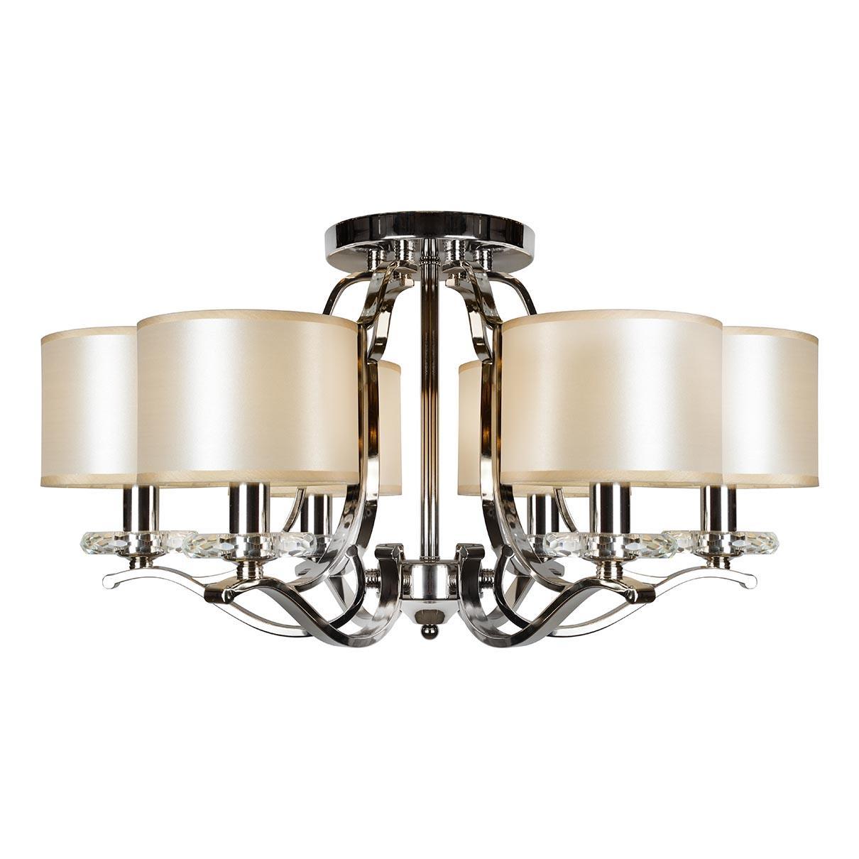 Потолочная люстра iLamp London 88389/6 CR от Китайского бренда iLamp из коллекции London будет удачно смотреться в спальни в современном стиле. Светильник выполнен из ткани с плафонами в форме цилиндра белого цвета.