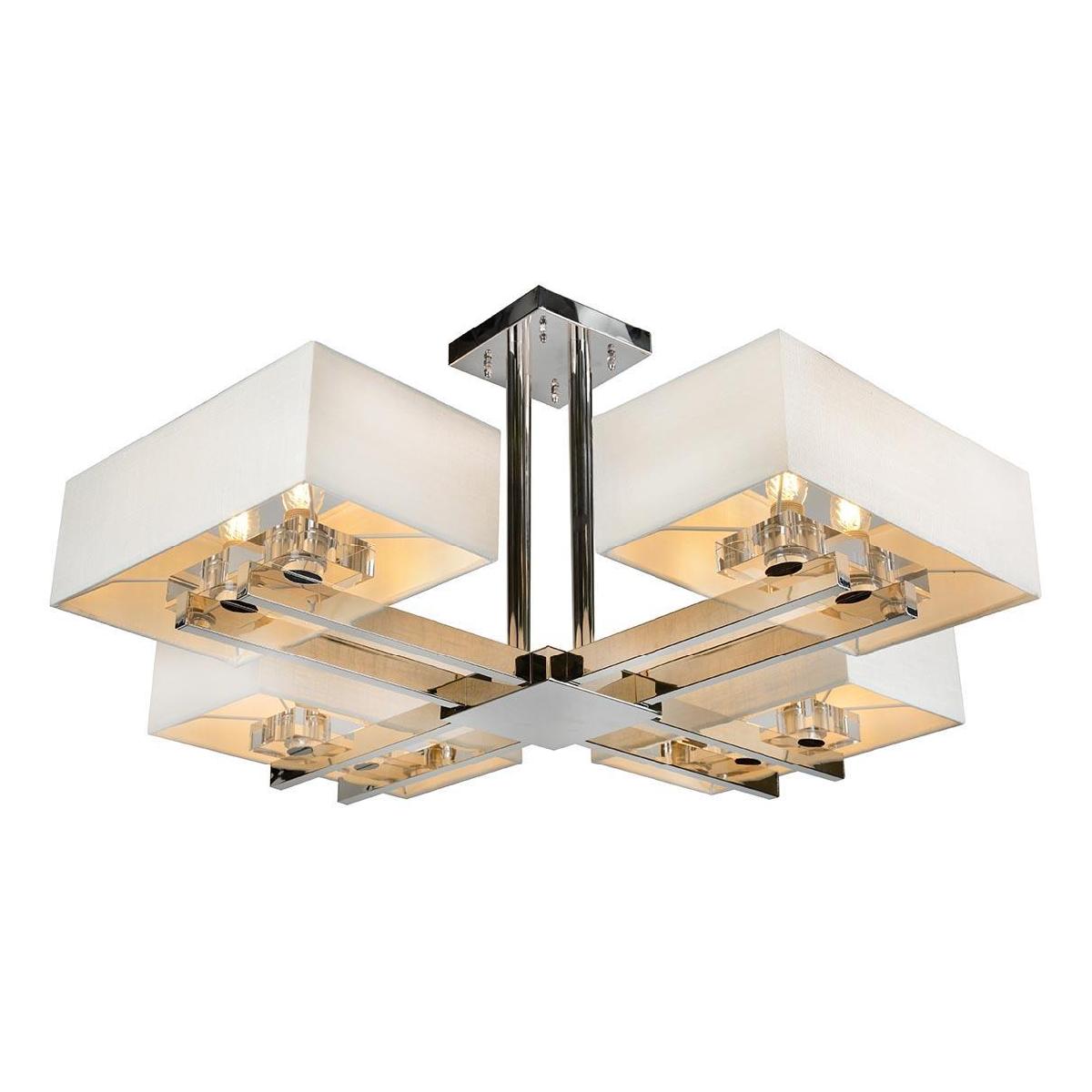 Потолочная люстра iLamp Play DJ0108 CR от Китайского бренда iLamp из коллекции Play будет удачно смотреться в гостиной в современном стиле. Светильник выполнен из ткани с плафонами в форме прямоугольника белого цвета.