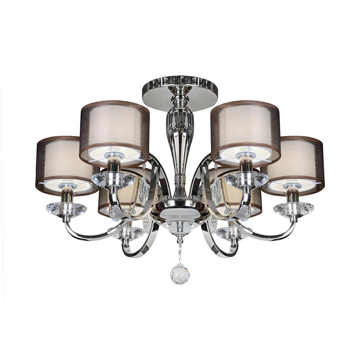 Потолочная люстра iLamp Sofia 88210/6 CR от Китайского бренда iLamp из коллекции Sofia будет удачно смотреться в спальни в стиле Арт-деко. Светильник выполнен из ткани с плафонами в форме цилиндра коричневого цвета.