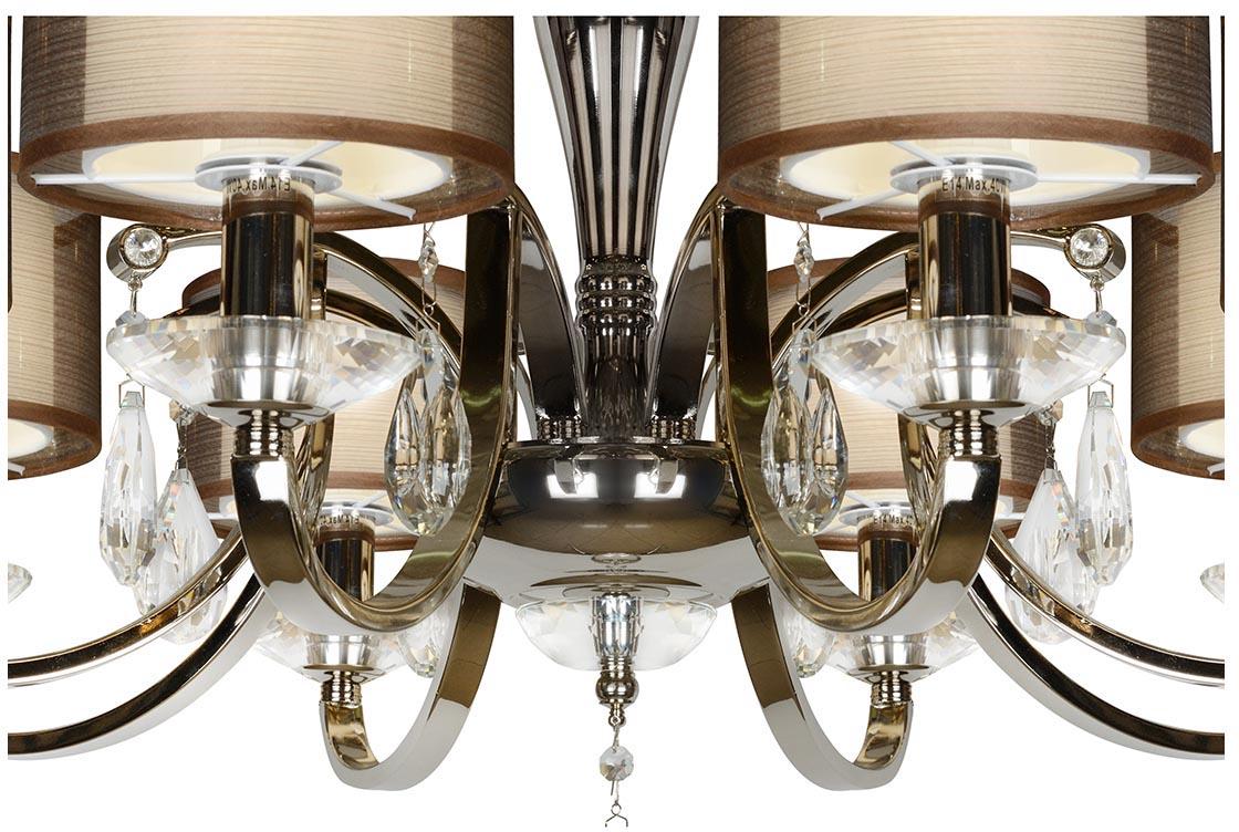 Потолочная люстра iLamp Sofia 88210/8 CR от Китайского бренда iLamp из коллекции Sofia будет удачно смотреться в гостиной в стиле Арт-деко. Светильник выполнен из ткани с плафонами в форме цилиндра коричневого цвета.