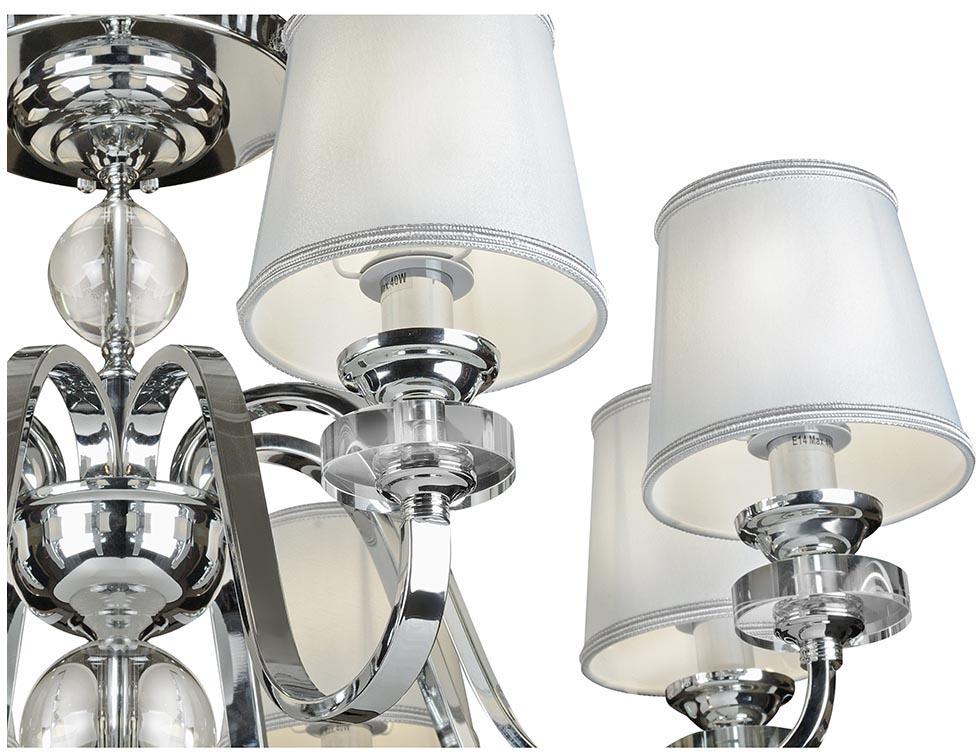 Потолочная люстра iLamp Vivia 82367/8 CR от Китайского бренда iLamp из коллекции Vivia будет удачно смотреться в гостиной в стиле модерн. Светильник выполнен из ткани с плафонами в форме конуса белого цвета.
