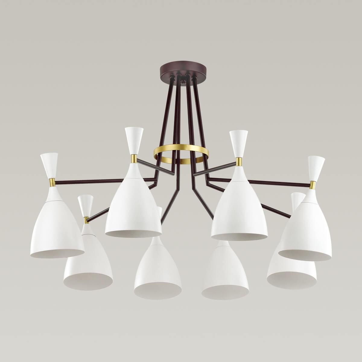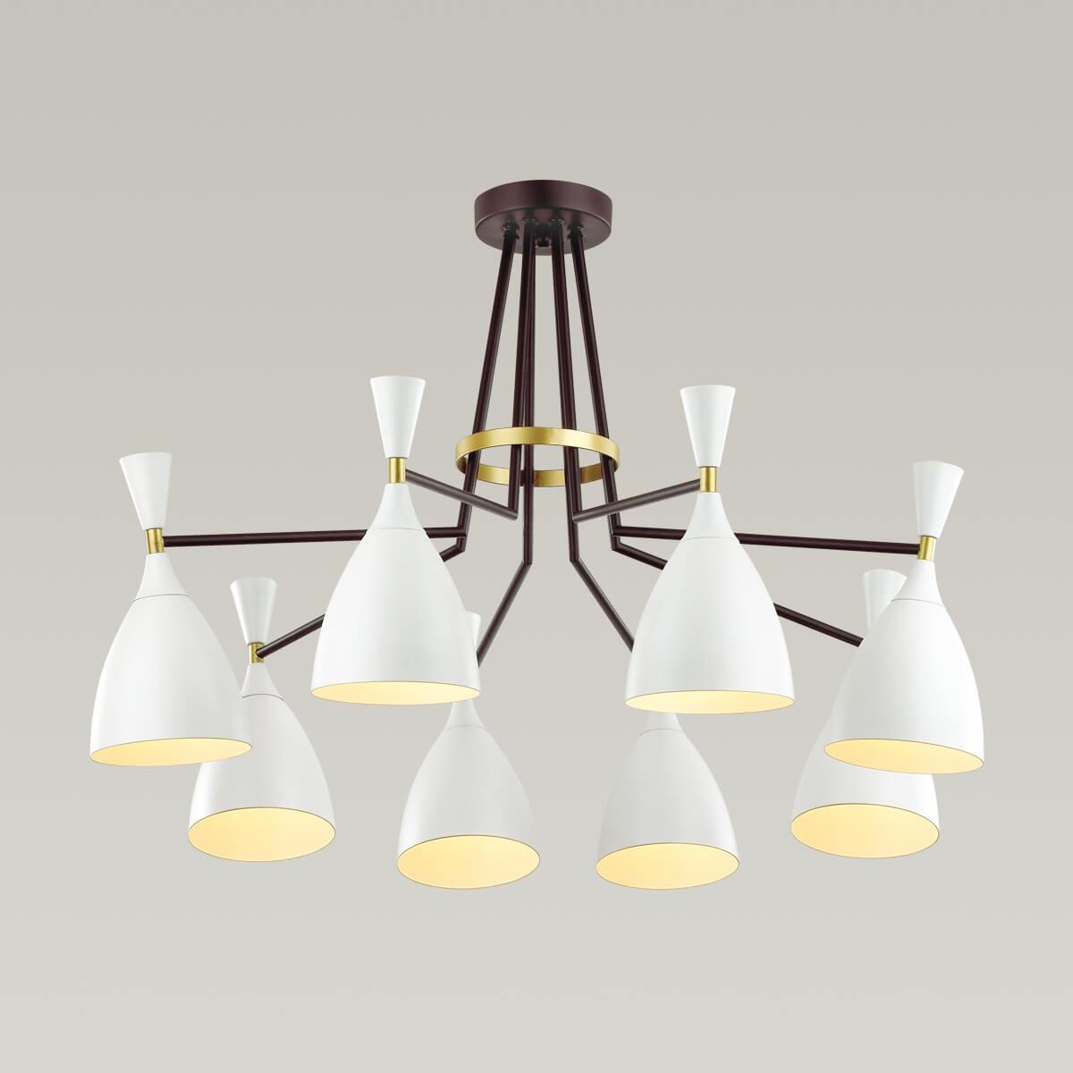 Потолочная люстра Lumion Oliver 4494/8C от Итальянского бренда Lumion из коллекции Moderni будет удачно смотреться в гостиной в дизайнерском стиле. Светильник выполнен из металла с плафонами в форме конуса белого цвета.