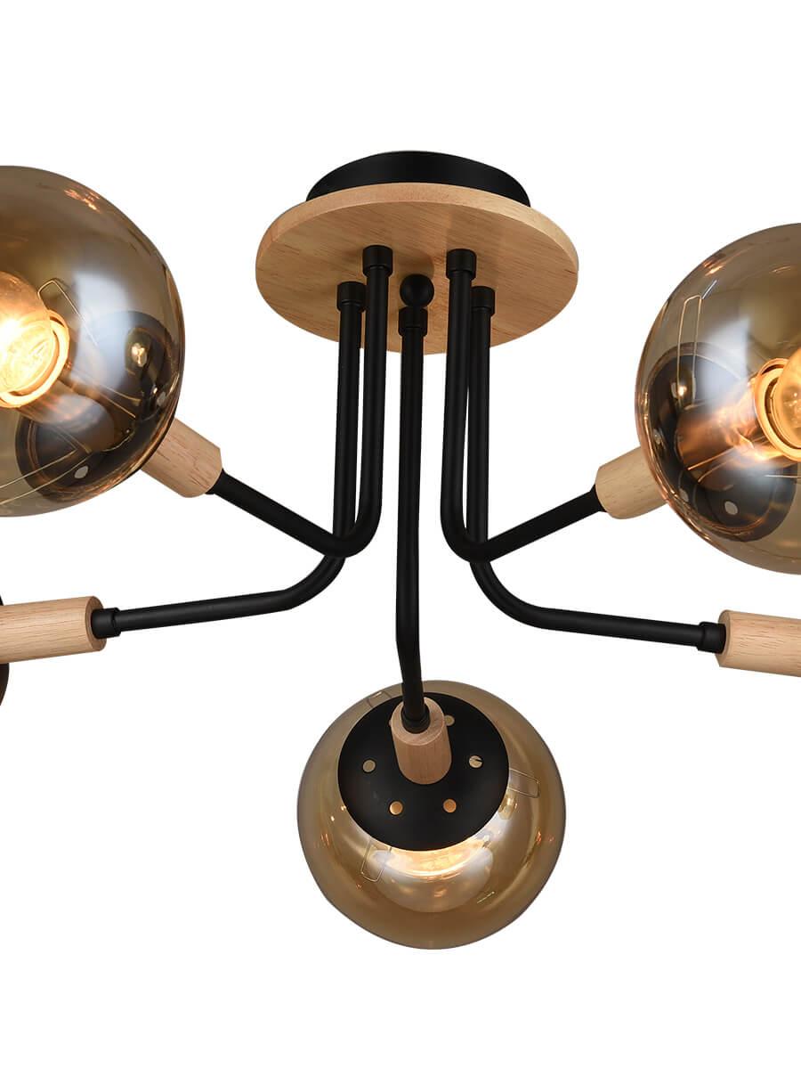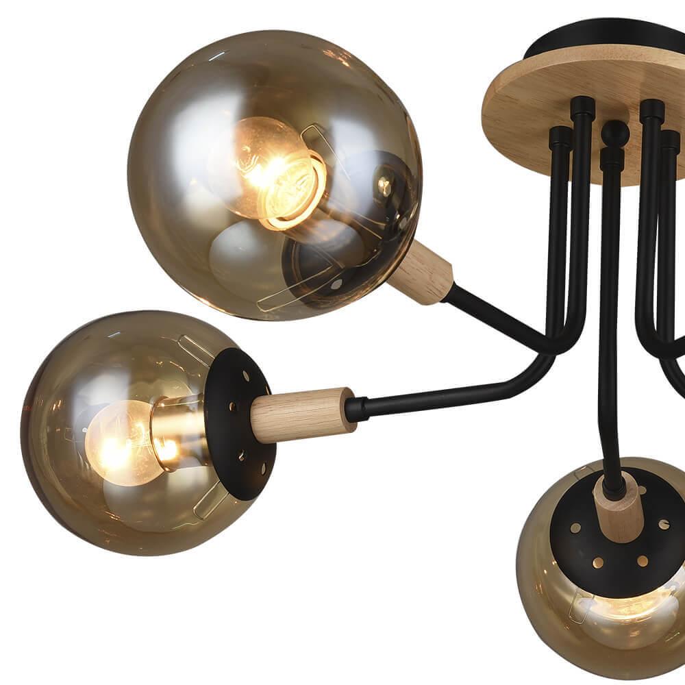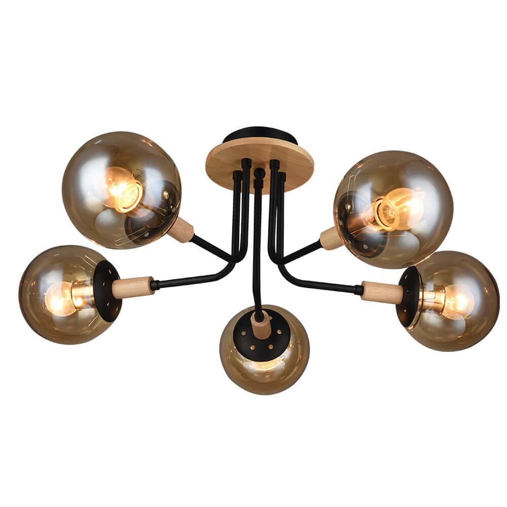 Производитель светильника рекомендует для устройства 5 ламп накаливания с цоколем E27 и мощностью 60 W, что позволит осветить помещение площадью 15 кв.м. Габариты изделия: высота – 250 мм, диаметр – 640 мм.