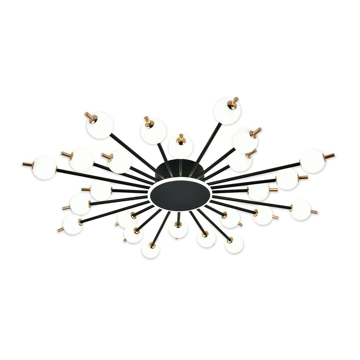 Производитель светильника рекомендует для устройства 24 светодиодных ламп с цоколем LED и мощностью 135 W, что позволит осветить помещение площадью кв.м. Габариты изделия: высота – 115 мм, диаметр – 1110 мм.