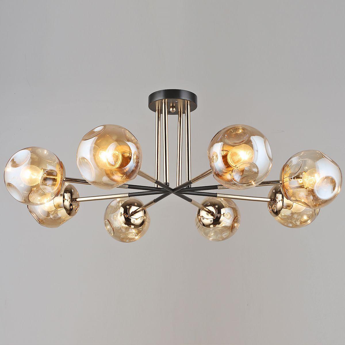 Производитель светильника рекомендует для устройства 8 ламп накаливания с цоколем E27 и мощностью 60 W, что позволит осветить помещение площадью 48 кв.м. Габариты изделия: высота – 285 мм, диаметр – 785 мм.