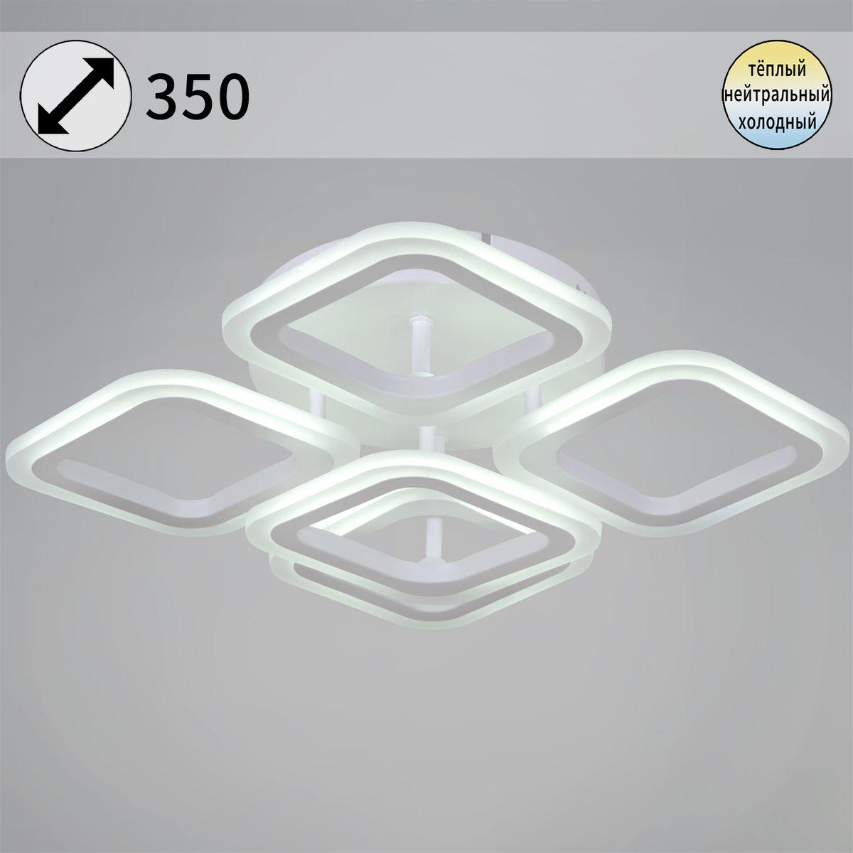 Потолочная светодиодная люстра Reluce 05104-0.3-4+1 WH от Китайского бренда из коллекции 05104 будет удачно смотреться в хай-тек стиле. Светильник выполнен из акрила с плафонами в форме белого цвета.