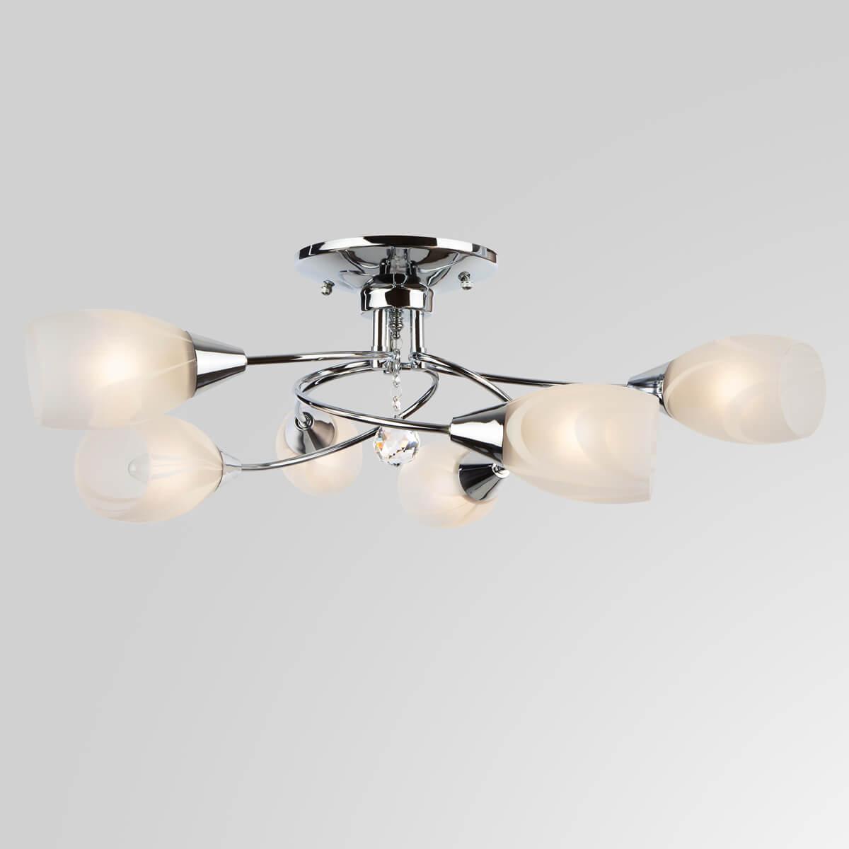 Подвесная люстра Eurosvet 2275/6 хром от Китайского бренда из коллекции 2275 Хром будет удачно смотреться в гостиной в современном стиле. Светильник выполнен из стекла с плафонами в форме белого цвета.