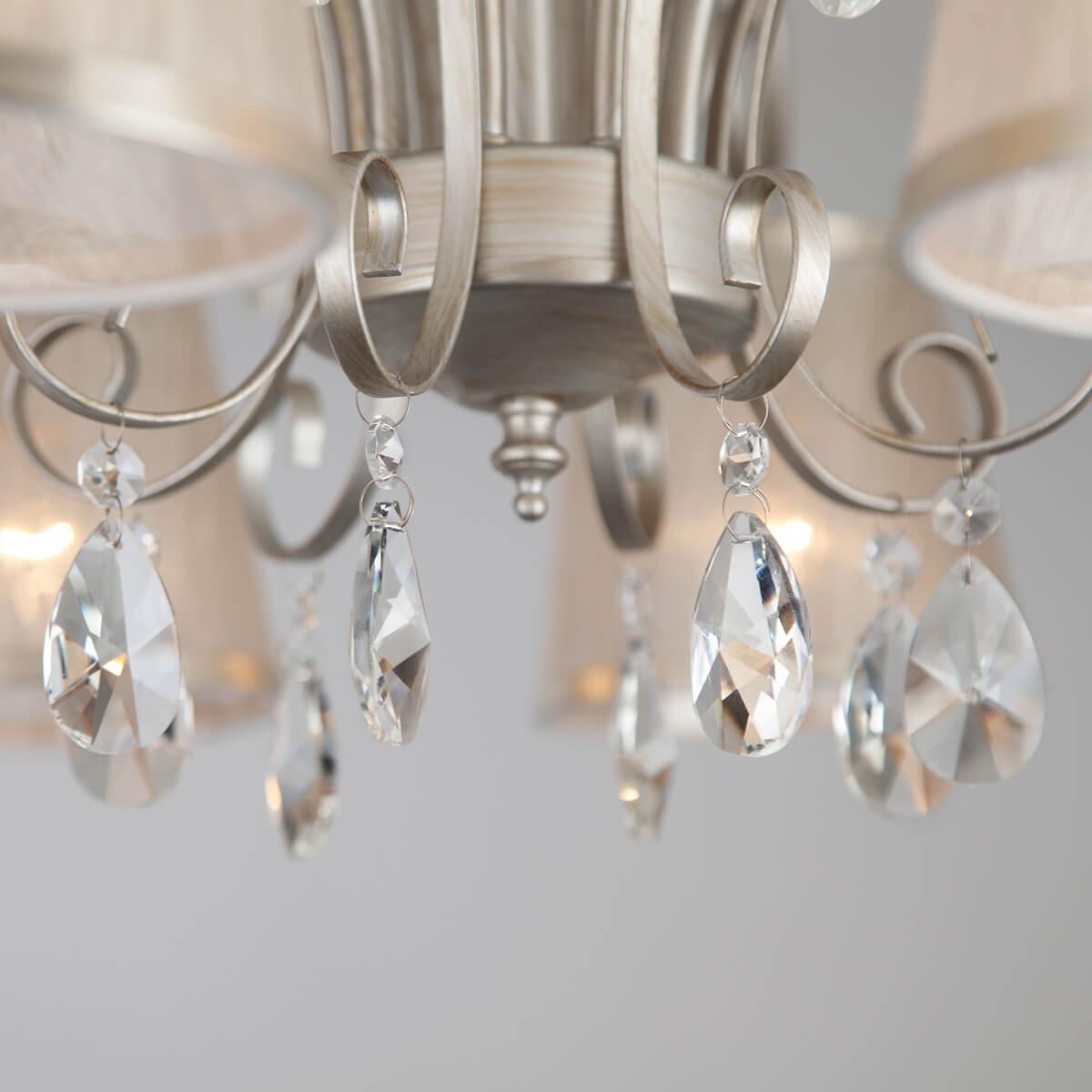 Потолочная люстра Eurosvet 60065/8 серебро от Китайского бренда из коллекции Liona будет удачно смотреться в гостиной в неоклассическом стиле. Светильник выполнен из ткани с плафонами в форме серебрянного цвета.