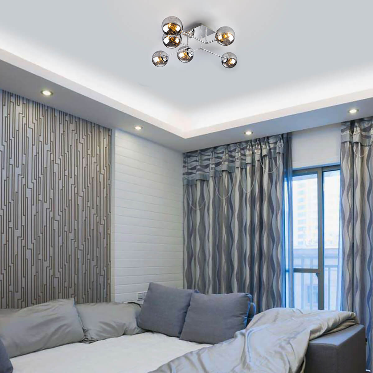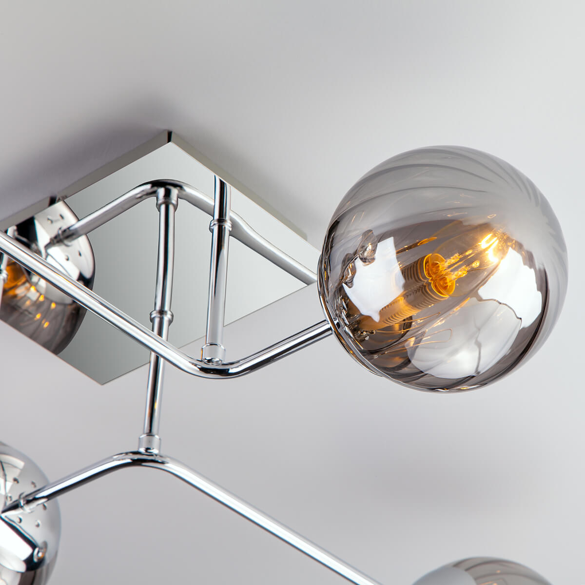 Потолочный светильник Eurosvet 30140/6 хром от Китайского бренда из коллекции Evita будет удачно смотреться в гостиной в хай-тек стиле. Светильник выполнен из стекла с плафонами в форме дымчатого цвета.