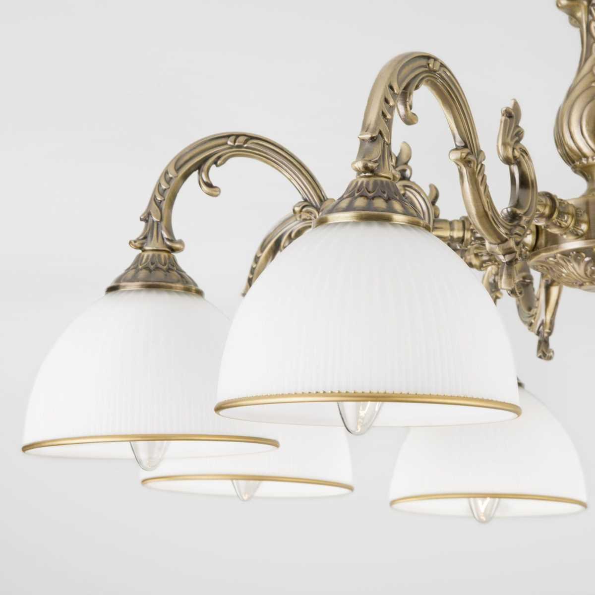 Потолочная люстра Eurosvet Caldera 60106/8 античная бронза от Китайского бренда из коллекции Caldera будет удачно смотреться в гостиной в классиком стиле. Светильник выполнен из стекла с плафонами в форме белого цвета.