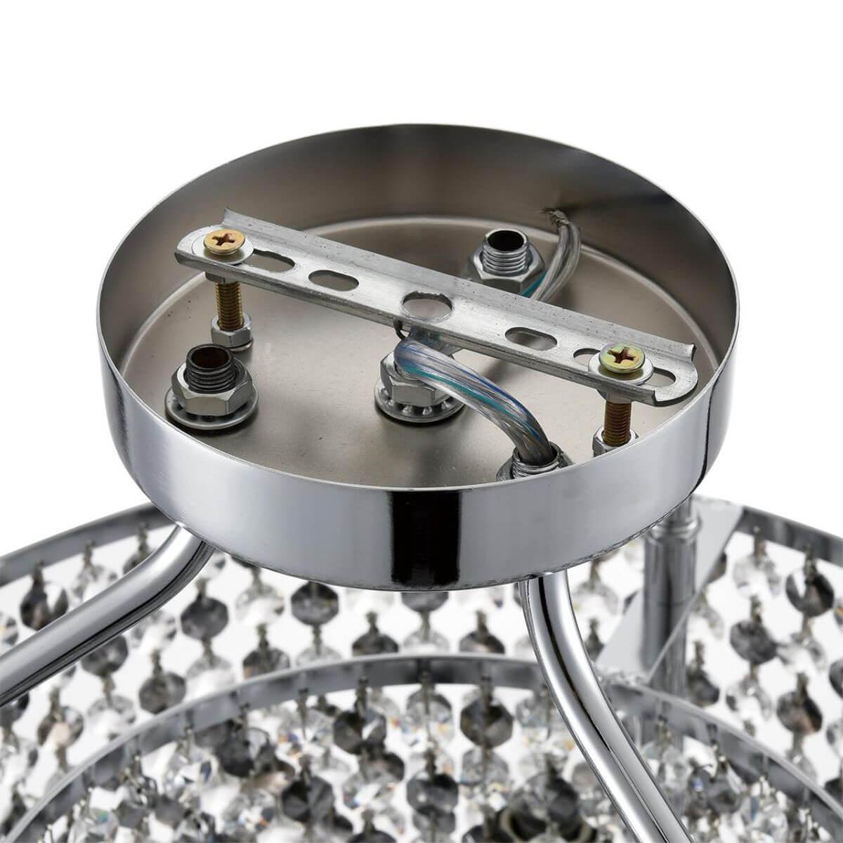 Производитель светильника рекомендует для устройства 5 ламп накаливания с цоколем E14 и мощностью 40 W, что позволит осветить помещение площадью 10 кв.м. Габариты изделия: высота – 385 мм, диаметр – 400 мм.
