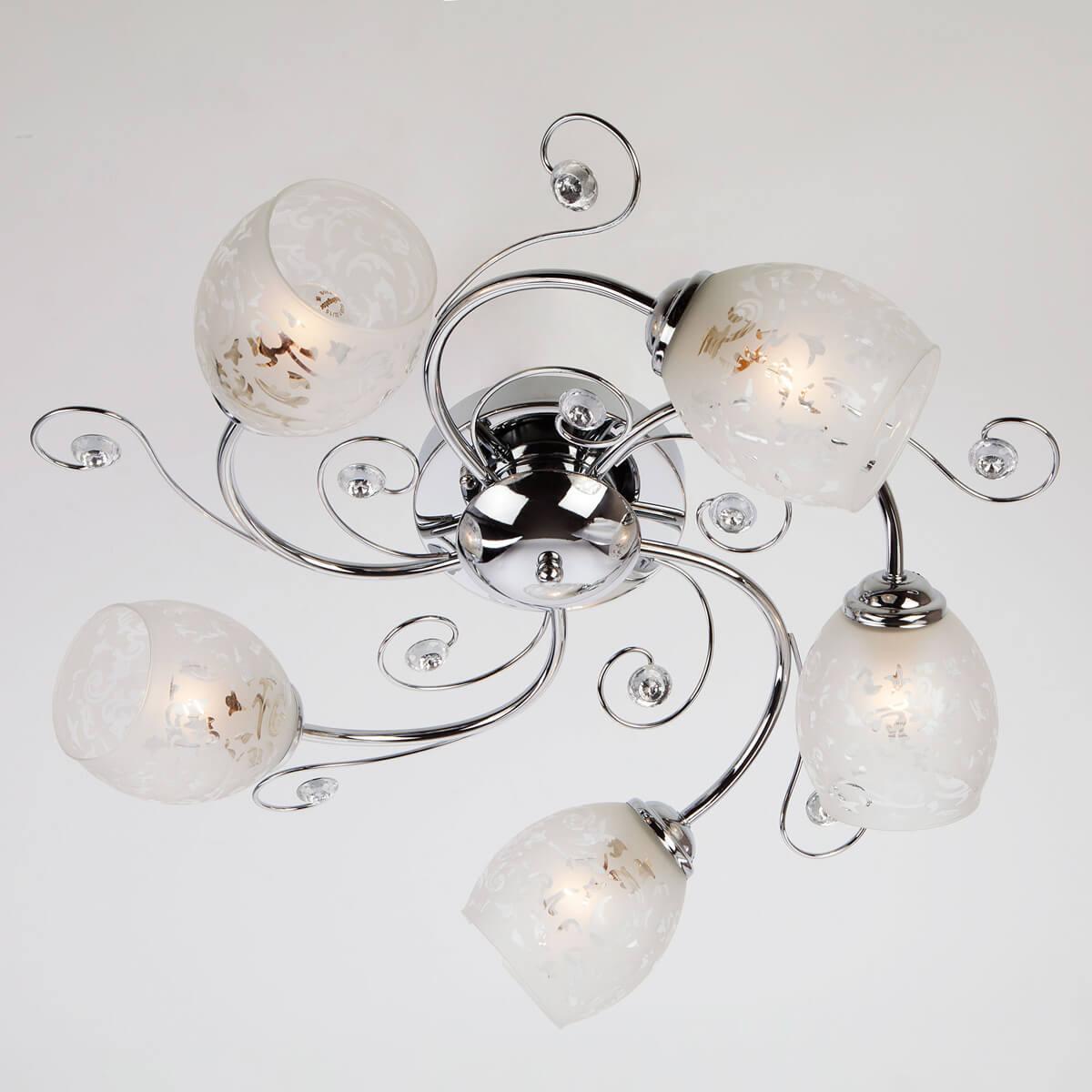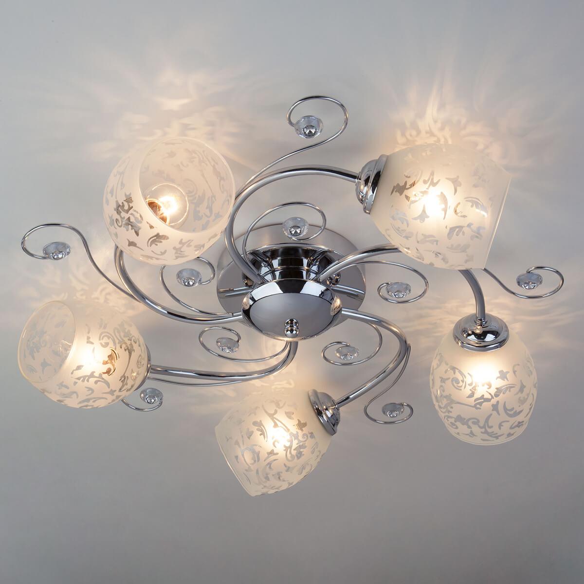 Подвесная люстра Eurosvet 9677/5 хром от Китайского бренда из коллекции 9677 хром будет удачно смотреться в спальни в современном стиле. Светильник выполнен из стекла с плафонами в форме белого цвета.