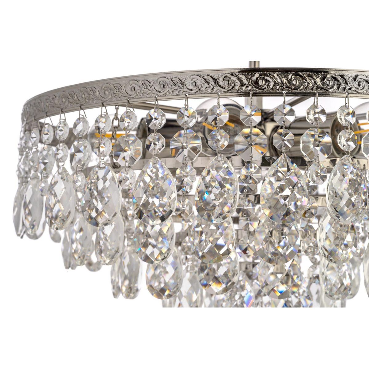 Потолочная люстра Arti Lampadari Castellana E 1.3.38.608 N от Итальянского бренда из коллекции Castellana Nickel будет удачно смотреться в спальни в классиком стиле. Светильник выполнен из хрусталя с плафонами в форме прозрачного цвета.