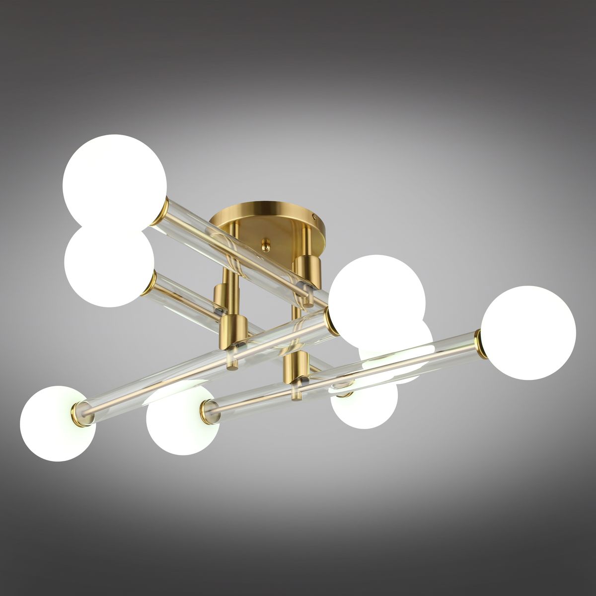 Потолочная люстра Omnilux Bucine OML-29507-08 от Китайского бренда из коллекции Bucine будет удачно смотреться в спальни в стиле модерн. Светильник выполнен из стекла с плафонами в форме белого цвета.