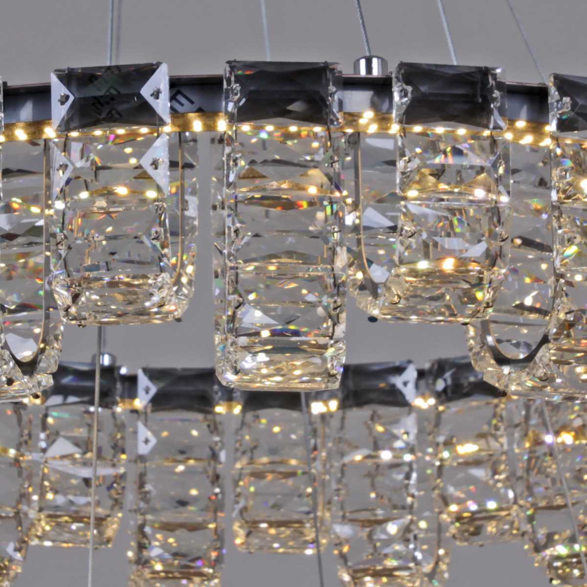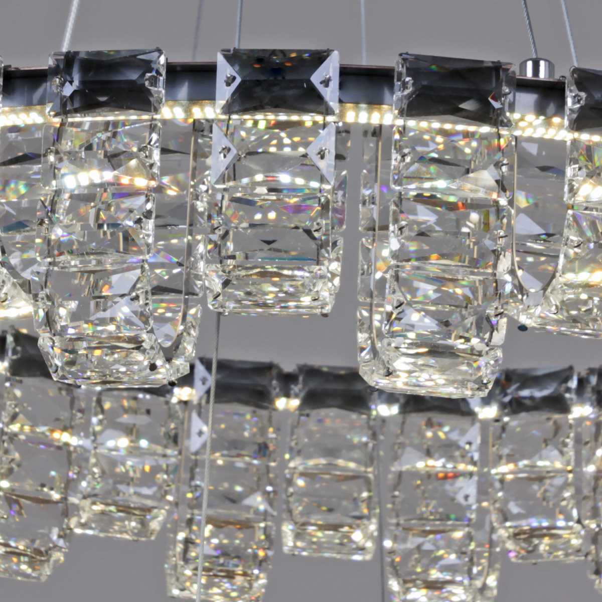 Производитель светильника рекомендует для устройства с цоколем LED и мощностью W, что позволит осветить помещение площадью 26 кв.м. Габариты изделия: высота – 1000 мм, диаметр – 800 мм.