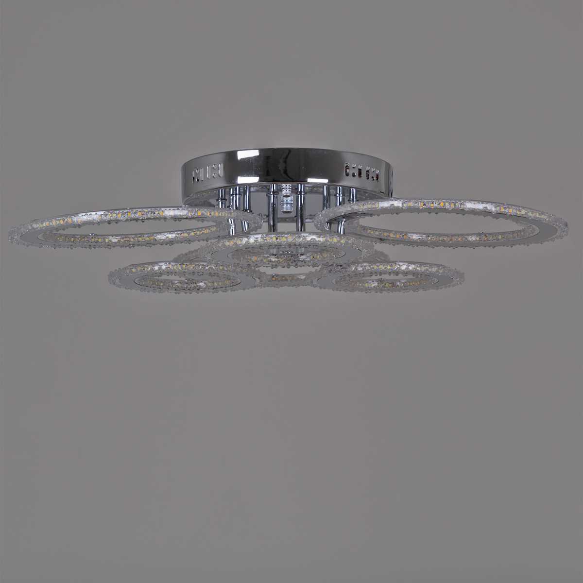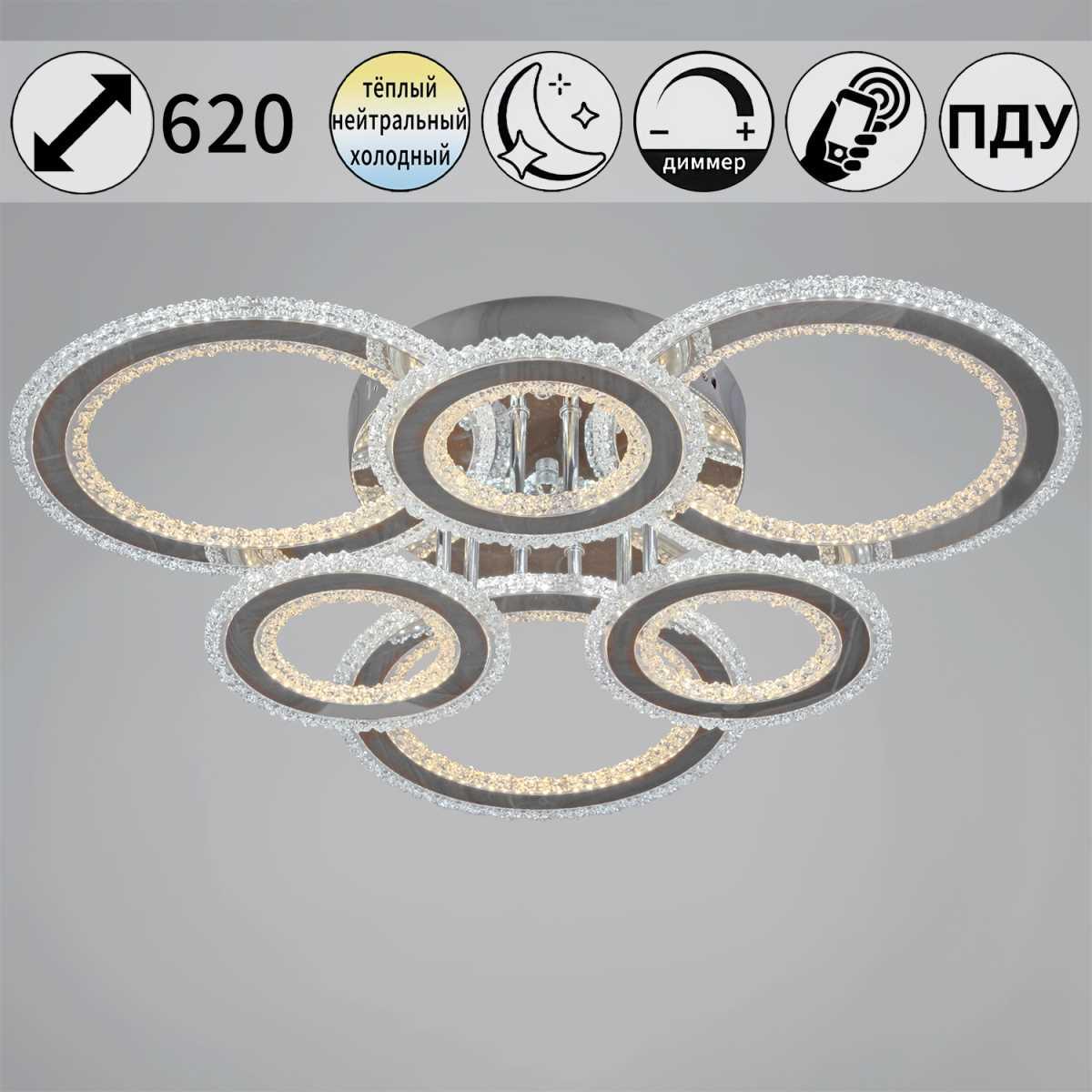 Производитель светильника рекомендует для устройства с цоколем LED и мощностью W, что позволит осветить помещение площадью 36 кв.м. Габариты изделия: высота – 130 мм, диаметр – 620 мм.