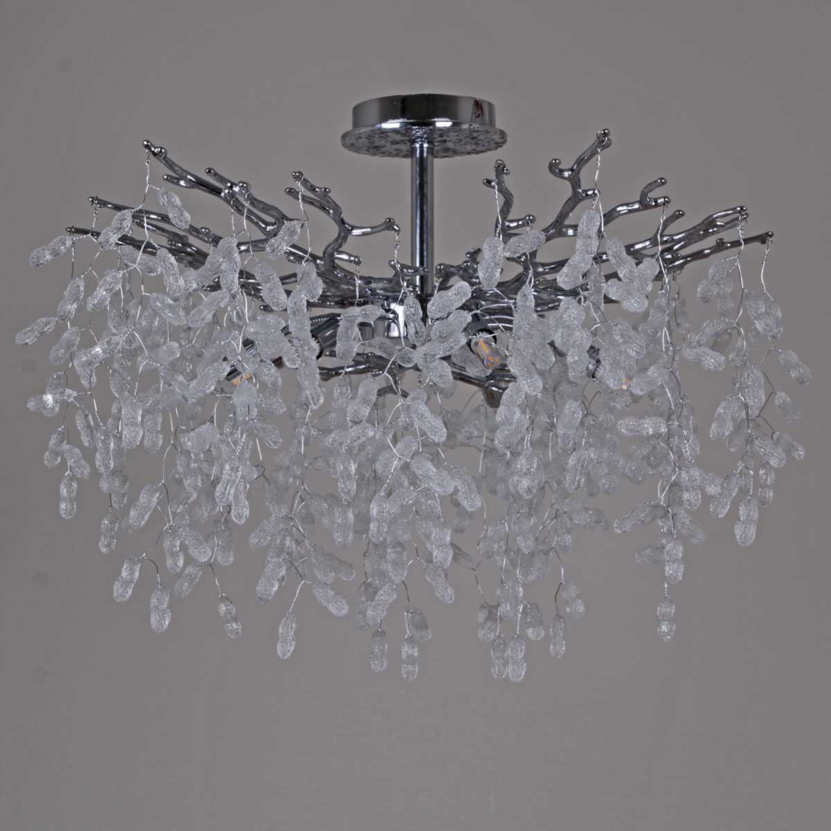 Производитель светильника рекомендует для устройства 8 с цоколем G9 и мощностью W, что позволит осветить помещение площадью 48 кв.м. Габариты изделия: высота – 500 мм, диаметр – 600 мм.