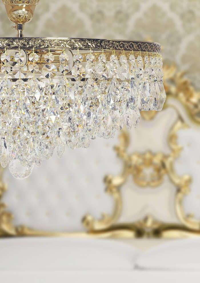 Потолочная люстра Arti Lampadari Castellana E 1.3.46.601 G от Итальянского бренда Arti Lampadari из коллекции Castellana Gold будет удачно смотреться в гостиной в классиком стиле. Светильник выполнен из хрусталя с плафонами в форме декоративного прозрачного цвета.