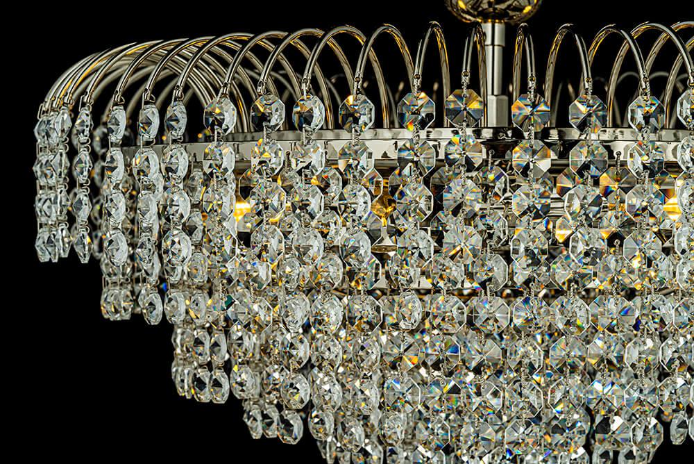 Потолочная люстра Arti Lampadari Elba E 1.2.40.100 N от Итальянского бренда Arti Lampadari из коллекции Elba будет удачно смотреться в гостиной в классиком стиле. Светильник выполнен из хрусталя с плафонами в форме декоративного прозрачного цвета.