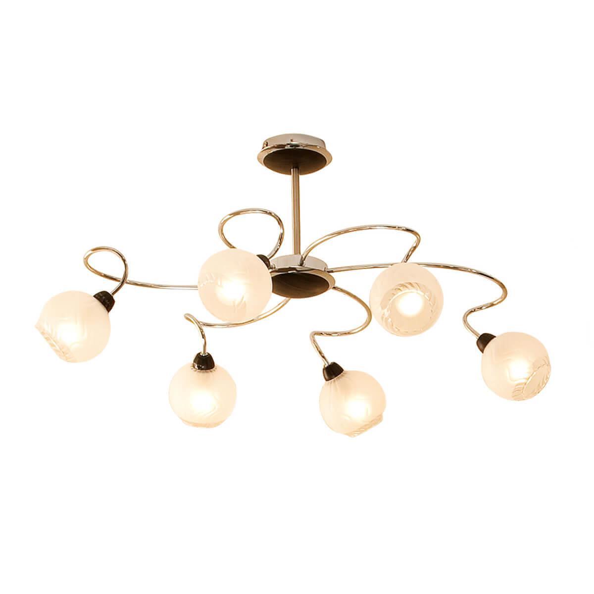 Производитель светильника рекомендует для устройства 6 ламп накаливания с цоколем E14 и мощностью 60 W, что позволит осветить помещение площадью 20 кв.м. Габариты изделия: высота – 420 мм, диаметр – мм.